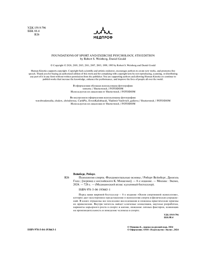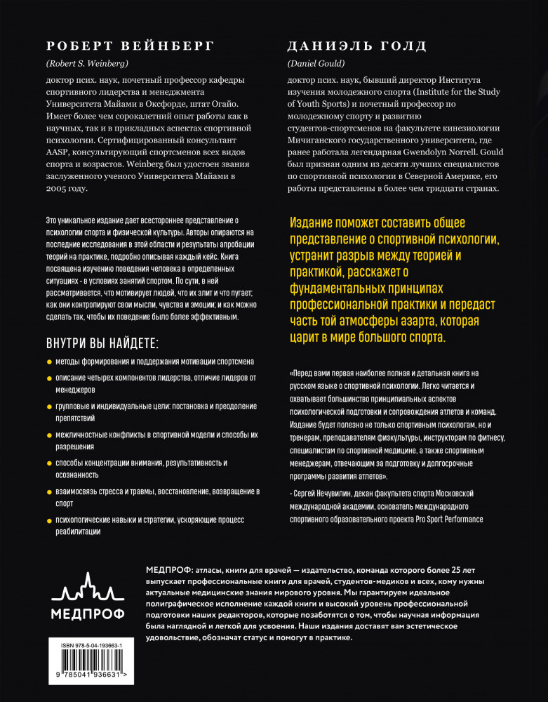 Серия: Медицинский атлас: культовый бестселлер Победа в спорте — это не только результат физических возможностей и натренированности. Огромную роль играет «воля к победе», а проще говоря — психологический аспект. Уникальное восьмое издание «Основ спортивной психологии», написанное всемирно известными авторами Робертом Вайнбергом и Дэниелом Гулдом, дает спортсменам, врачам спортивной медицины, спортивным психологам и психотерапевтам уникальные инструменты для достижения максимально возможных результатов в спорте. Это руководство станет базовым для обучения врачей спортивной медицины, спортивных консультантов, спортивных психологов. Также оно может представлять интерес для детских психиатров, педиатров и учителей. |