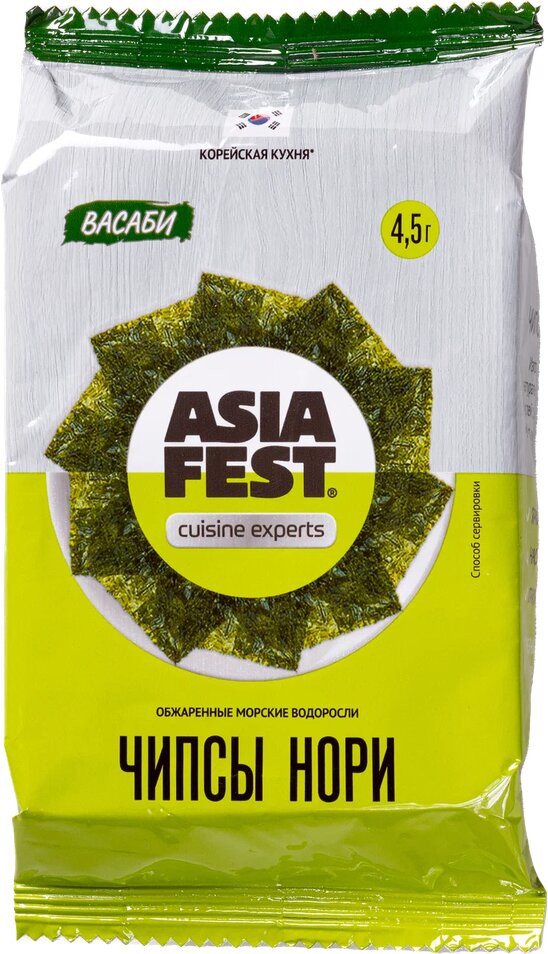 Чипсы нори из морской водоросли «Васаби» — популярная закуска в Азии, сегодня пользуются успехом во многих других странах. Чипсы Нори содержат в себе минеральные вещества, витамины и протеин. Производятся из морской капусты асакуса-нори (род Porphyra). Обработка происходит в два этапа: прессование и сушка.