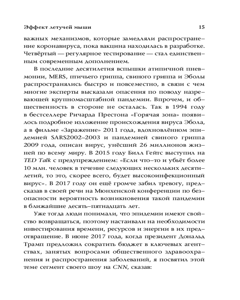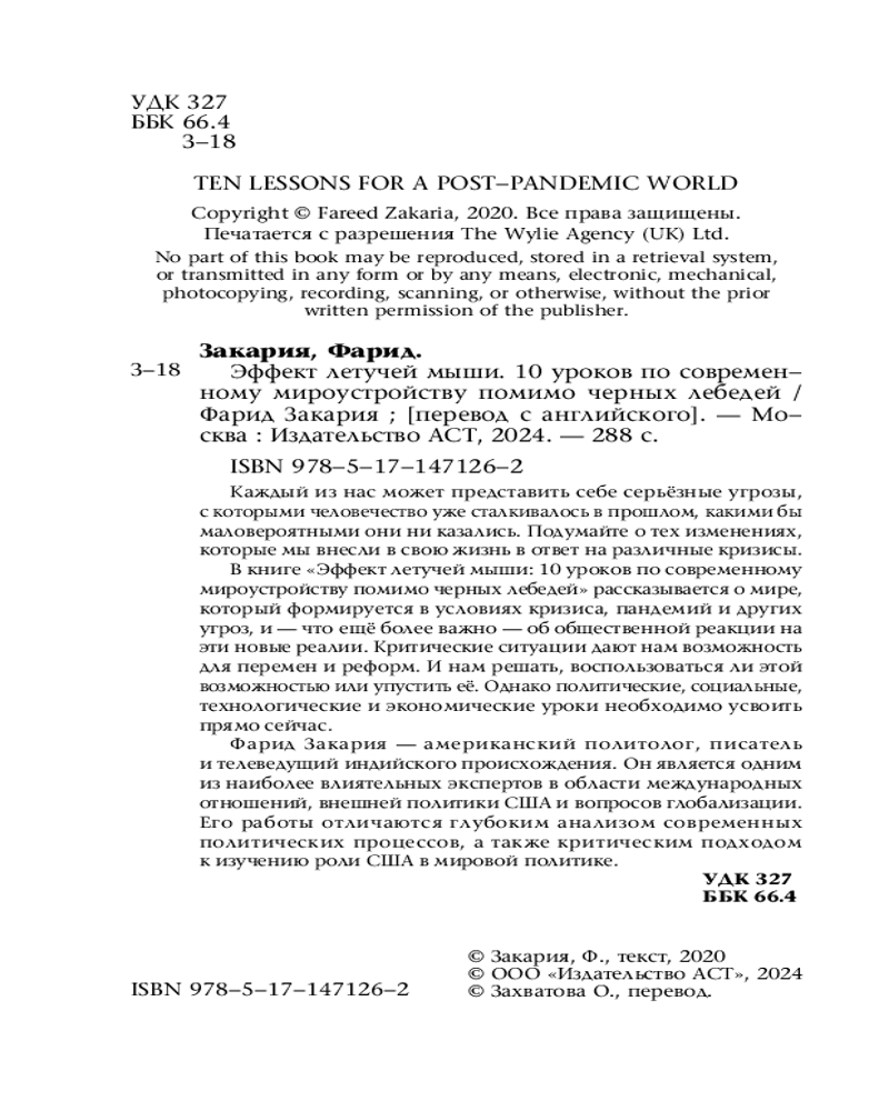 💳 Оплатить за товар можно при получении 🇰🇿 Есть бесплатная доставка по Казахстану от 1 дня 🎁 Копите бонусы с каждой покупки Серия: Звезда Рунета Каждый из нас может представить себе серьёзные угрозы, с которыми человечество уже сталкивалось в прошлом, какими бы маловероятными они ни казались. Подумайте о тех изменениях, которые мы внесли в свою жизнь в ответ на различные кризисы. В книге «Эффект летучей мыши:10 уроков по современному мироустройству помимо черных лебедей» рассказывается о мире, который формируется в условиях кризиса, пандемий и других угроз, и — что ещё более важно — об общественной реакции на эти новые реалии. Критические ситуации дают нам возможность для перемен и реформ. И нам решать, воспользоваться ли этой возможностью или упустить её. Однако политические, социальные, технологические и экономические уроки необходимо усвоить прямо сейчас. |