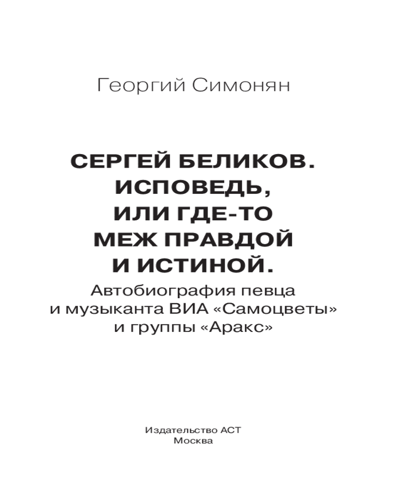 Сергей Беликов. Исповедь, или где-то меж правдой и истиной. Автобиография певца и музыканта ВИА «Самоцветы» и группы «Аракс»