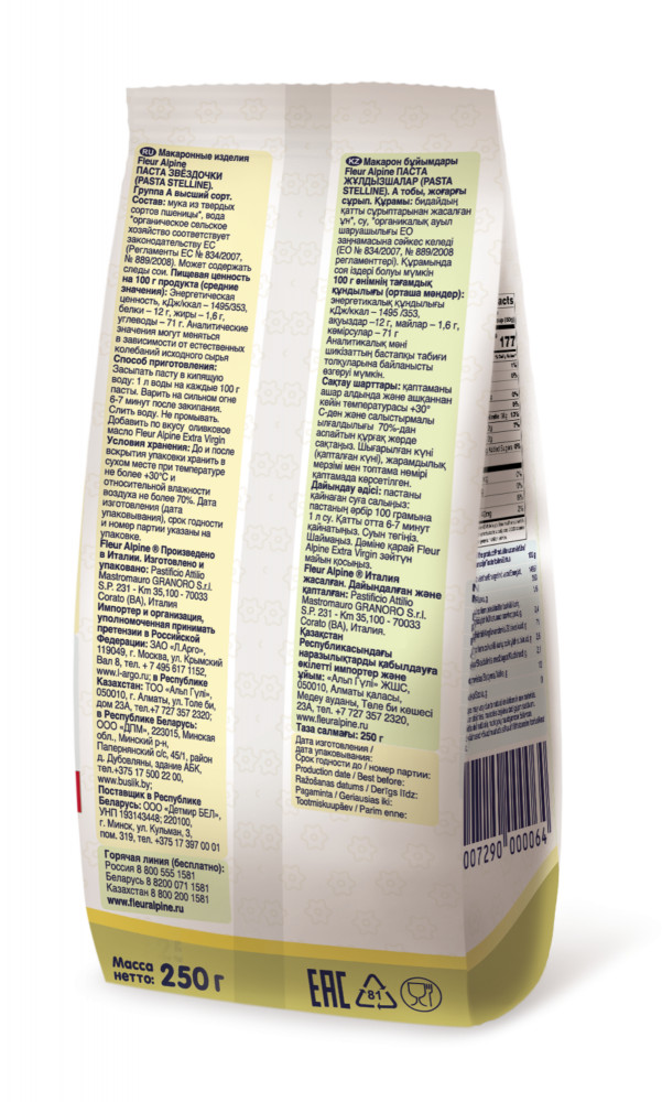 💳 Оплатить за товар можно при получении 🇰🇿 Есть бесплатная доставка по Казахстану от 1 дня 🎁 Копите бонусы с каждой покупки Макароны Звездочки — продукт для всей семьи, который родители могут предложить малышу, когда в его меню уже входят блюда общего стола. Добавьте немного оливкового масла первого холодного отжима Fleur Alpine в свежеприготовленную пасту, и ребенок обязательно оценит новое для него блюдо. |