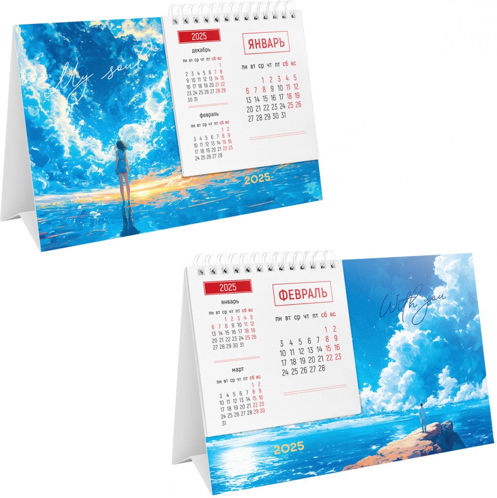 Календарь настольный перекидной BG «Mono. Dream» на 2025 год — незаменимая вещь на рабочем столе и отличный помощник для офиса. Размер вертикального календаря — 200х130 мм, тип скрепления — гребень/спираль. Календарь имеет подложку с рисунком и 6 листов с календарной сеткой на 3 месяца. Календарный блок изготовлен из офсетной бумаги плотностью 80 г/м² с полноцветной печатью. Нижняя подложка изготовлена из картона плотностью 320 г/м². Индивидуальная упаковка в пакет с европодвесом.