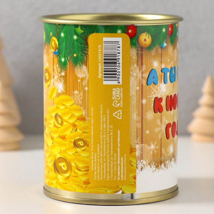 Копилка-банка металл А ты готов к новому году?В данный момент этот товар отсутствует в продаже. Возможно, у нас найдется аналогичный или похожий товар здесь. Сохраните свои сбережения с нашей стильной и практичной копилкой! Эта копилка станет не только полезным аксессуаром для накопления денег, но и оригинальным элементом декора. |