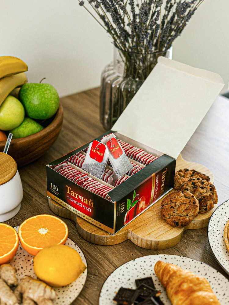 Приведите свой чаепитие на новый уровень с чаем черного сорта Татчай. Этот чай, произведенный в Индии и собранный из лучших мелколистовых чайных садов, обещает не только бодрость и энергию, но и великолепный вкус. Каждая упаковка включает в себя 100 пакетиков, что обеспечит вам наслаждение несколькими месяцами превосходного чаепития. Удобные пакетики позволят вам приготовить чашку прекрасного черного чая в любое время дня. Чай Татчай — это не только отличный выбор для вашего собственного чаепития, но и идеальный подарок для вашей мамы, девушки, подруги, бабушки или жены. Подарите им возможность насладиться богатым вкусом и ароматом этого чудесного напитка.
