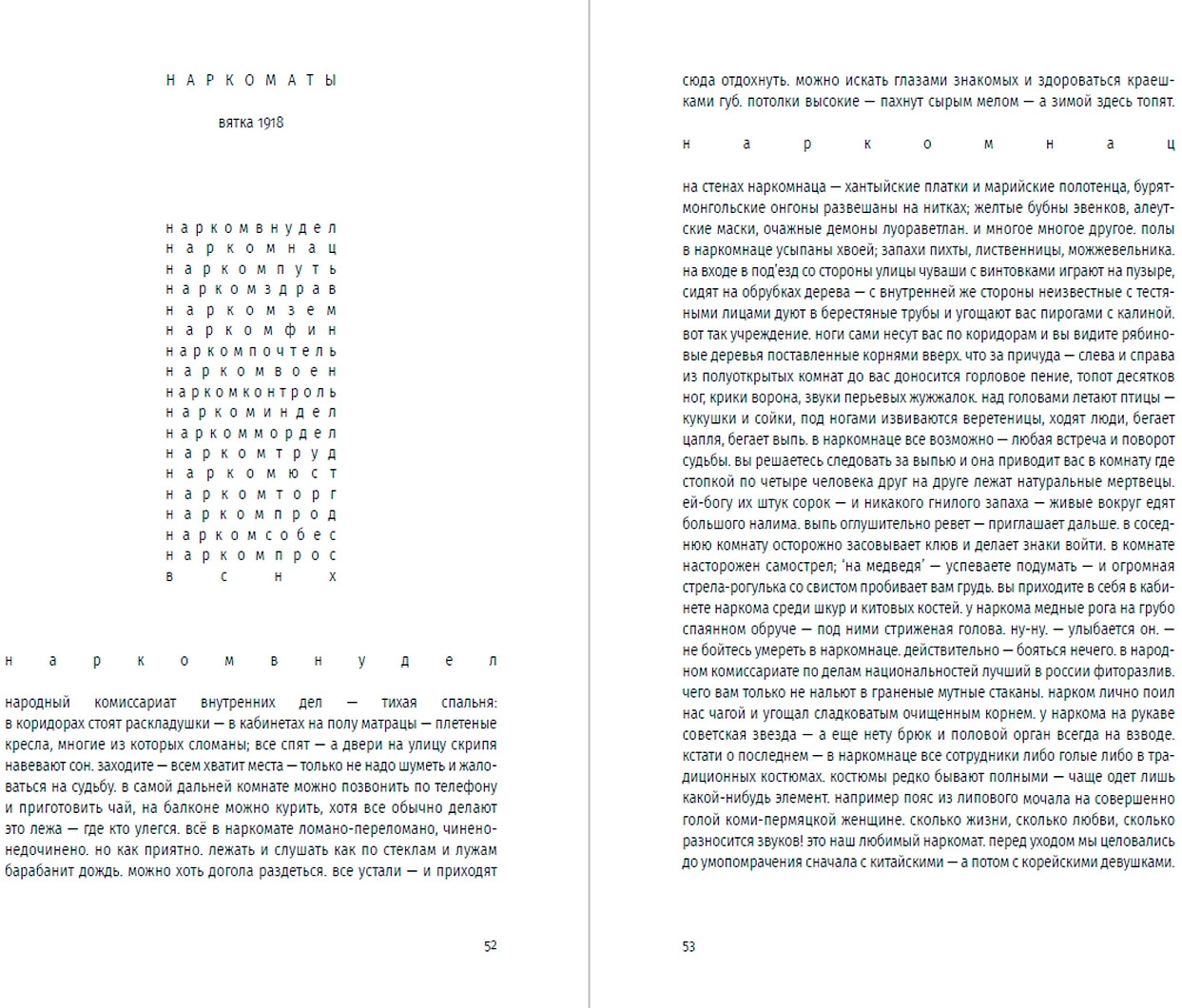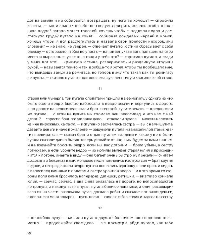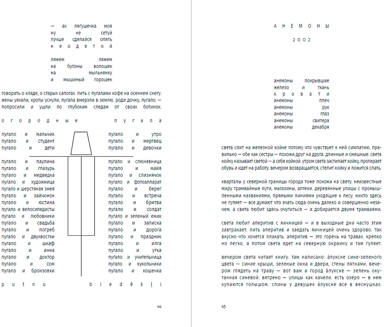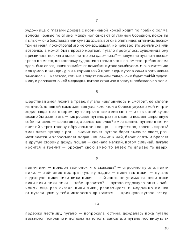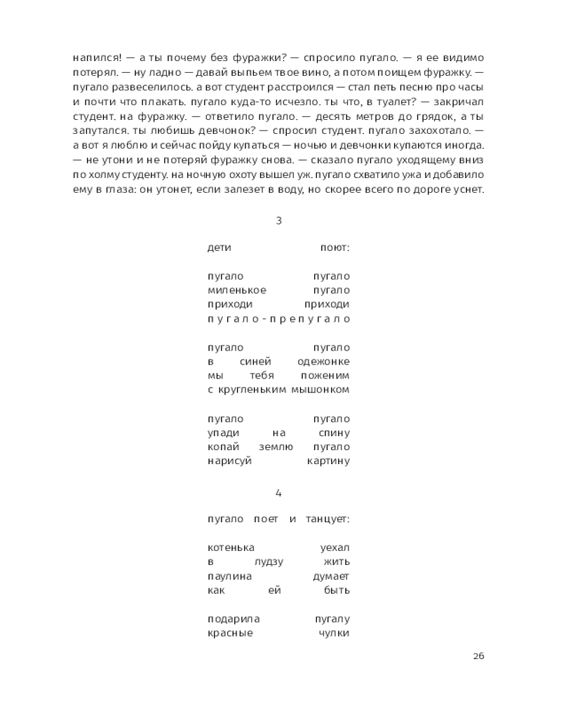 Этой прозе свойственна особая органика, визуальная форма: заглавные буквы здесь отсутствуют, пунктуация упрощена, а текст расположен определенным образом на пространстве страницы — так отсекается лишнее, текст наполняется воздухом и каждое слово становится акцентированным. |