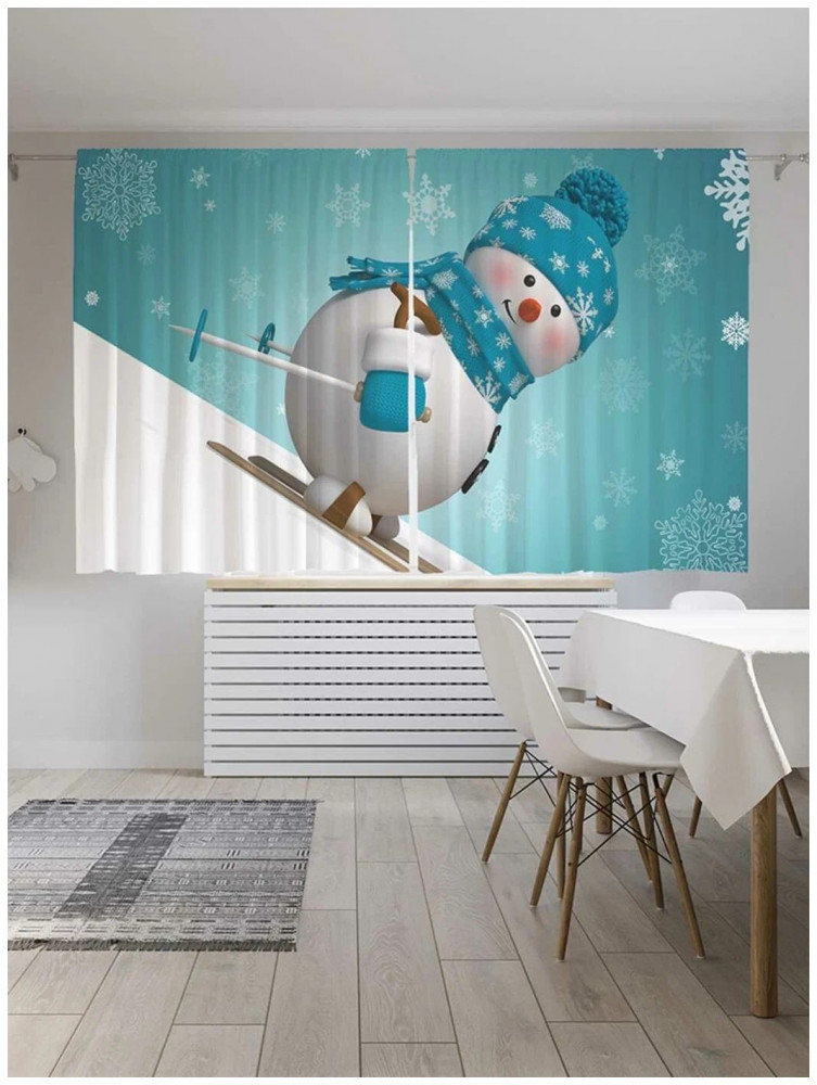 JoyArty Комплект штор с фотопечатью «Снеговик лыжник»