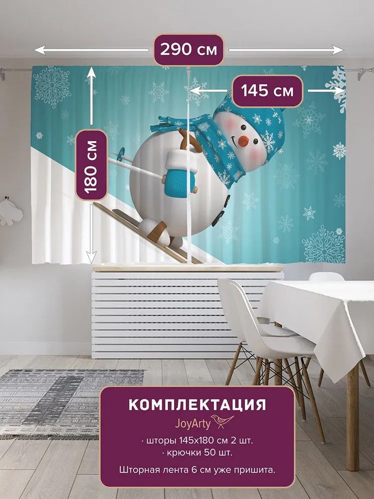 Комплект штор с фотопечатью «Снеговик лыжник» | Снеговик лыжник | JoyArty