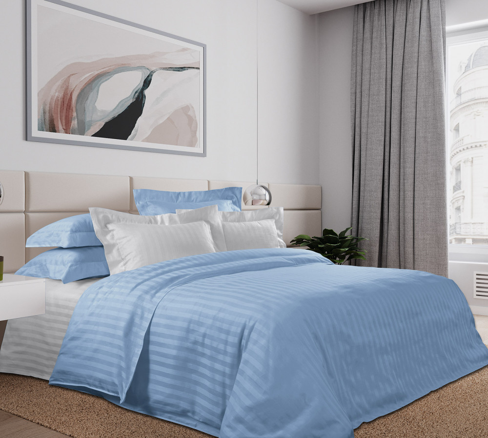Комплект постельного белья страйп-сатин из длинноволокнистого пакистанского хлопка высокой плотности 200ТС. Сатиновое плетение придает ткани мягкость, шелковистость, эластичность и благородный блеск. Высококачественная натуральная ткань из 100% мерсеризованного хлопка отлично пропускает воздух и впитывает влагу, не вызывает аллергии и раздражения кожи, не накапливает статического электричества, хорошо драпируется и почти не мнется, можно гладить по настроению.