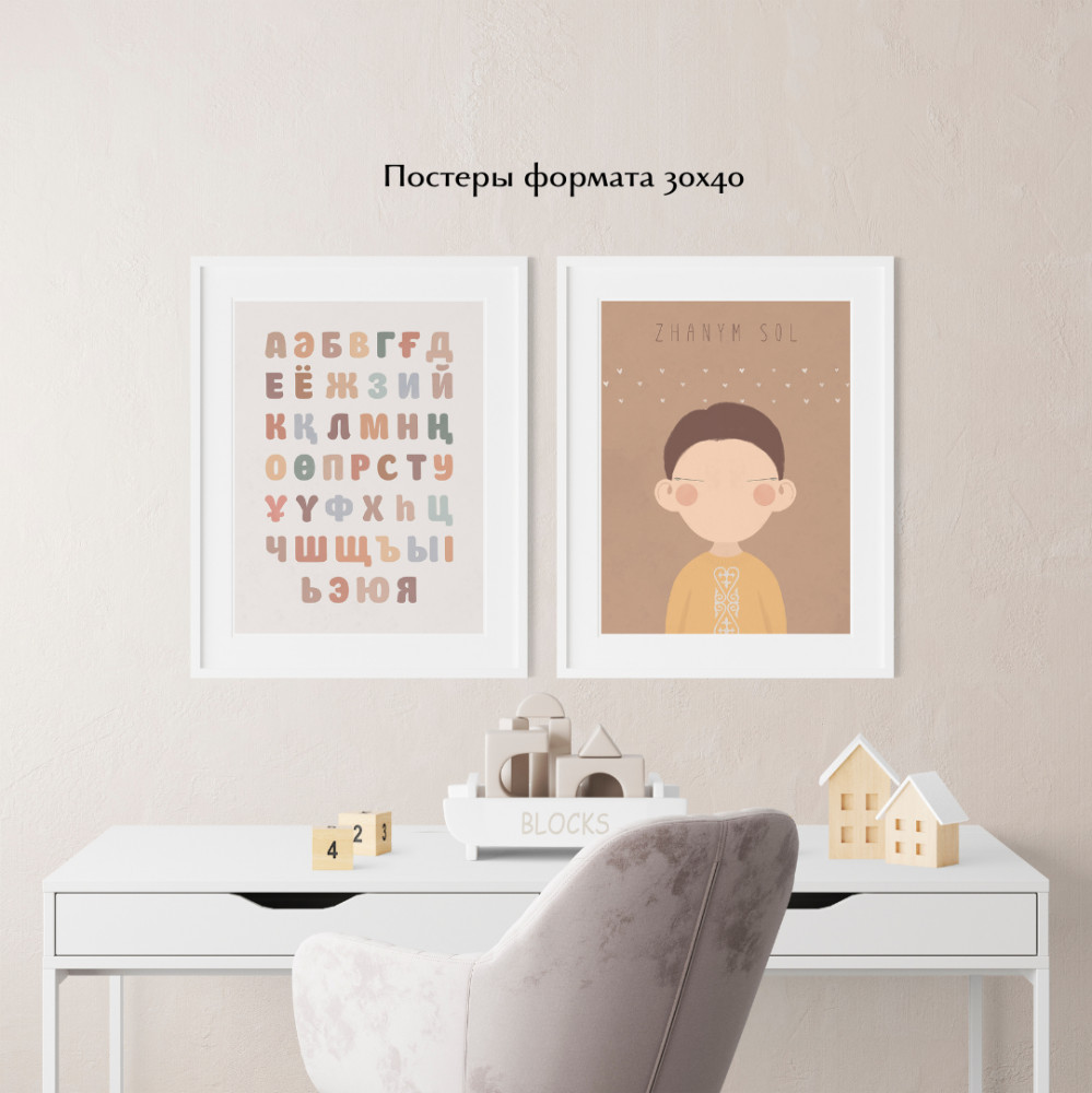 Детские интерьерные постеры «Boho Zhanym Sol Boy» формата 30 × 40 см. Плакаты детские интерьерные на стену. |