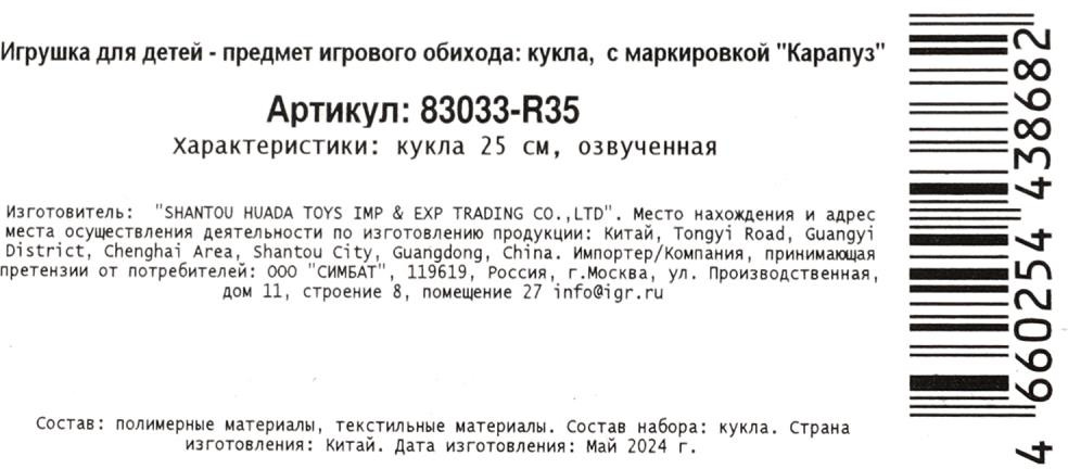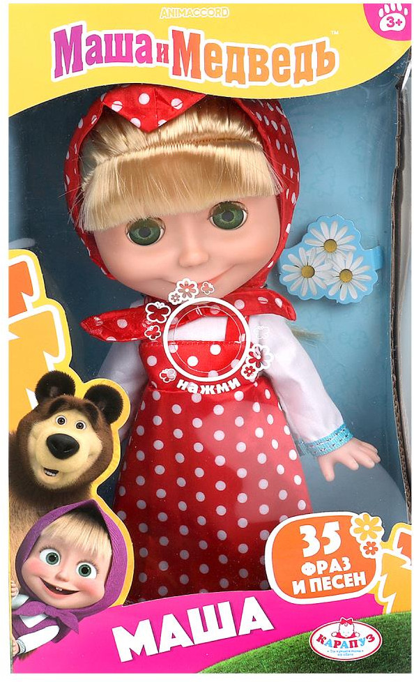 💳 Оплатить за товар можно при получении 🇰🇿 Есть бесплатная доставка по Казахстану от 1 дня 🎁 Копите бонусы с каждой покупки Озвученная кукла «Маша» ТМ «Карапуз» станет отличным подарком для маленьких поклонниц мультсериала «Маша и Медведь»: |