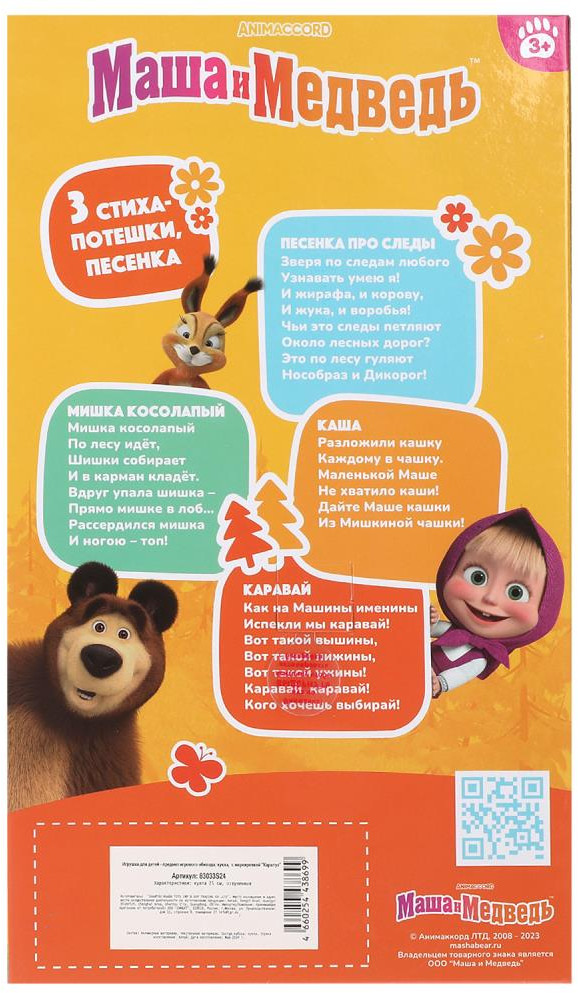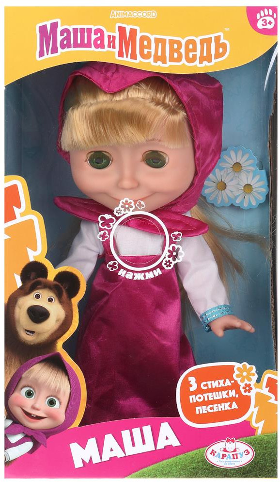 💳 Оплатить за товар можно при получении 🇰🇿 Есть бесплатная доставка по Казахстану от 1 дня 🎁 Копите бонусы с каждой покупки Озвученная кукла «Маша» ТМ «Карапуз» станет отличным подарком для маленьких поклонниц мультсериала «Маша и Медведь»: |