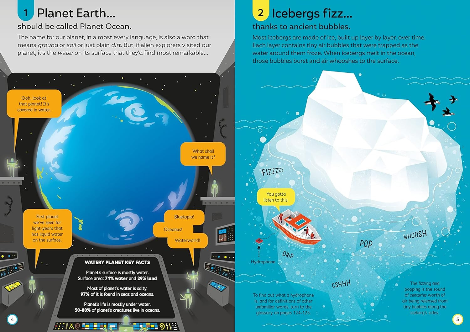 An eye-catching information book filled with one hundred quirky and surprising facts about the seas and oceans. Do fish wear pyjamas? What’s the sound of an iceberg melting? How many sheep did it take to launch a Viking longship? Which is faster — a tsunami or a bullet train? Find the answers to these and many more questions in a book that explores the history, science, environment and art of our planet’s seas and oceans. Richly illustrated and perfect for broadening children’s knowledge of an essential subject, away from the classroom. Part of the popular ’100 Things to Know’ series, ideal gifts for fact-hungry children. Each page features a new fact supported by clear, comprehensible explanations and bold illustrations, maps and infographics. Perfect to dip in and out of, alone or with friends and family. |