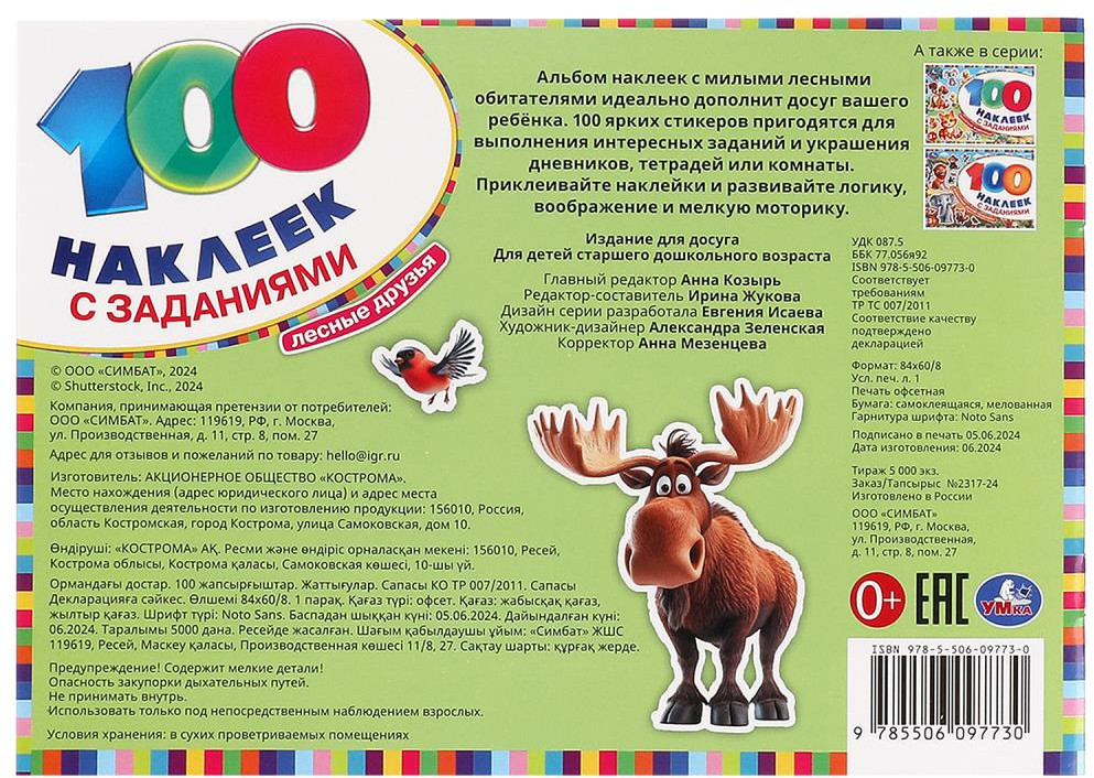 💳 Оплатить за товар можно при получении 🇰🇿 Есть бесплатная доставка по Казахстану от 1 дня 🎁 Копите бонусы с каждой покупки Серия: 100 наклеек с заданиями Альбом наклеек «Лесные друзья» из серии «100 наклеек с заданиями» ТМ «УМка» непременно понравится ребёнку: |
