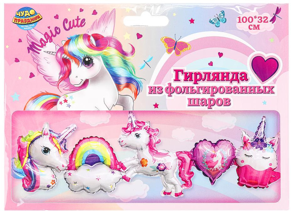 Чудо праздник Фольгированный воздушный шар-гирлянда «Единорог»-30% +22