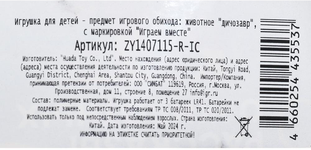 Спасибо ..за доставку , внуку очен. Понравился динозаврик