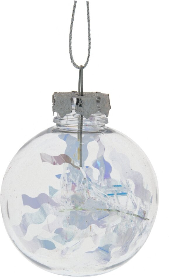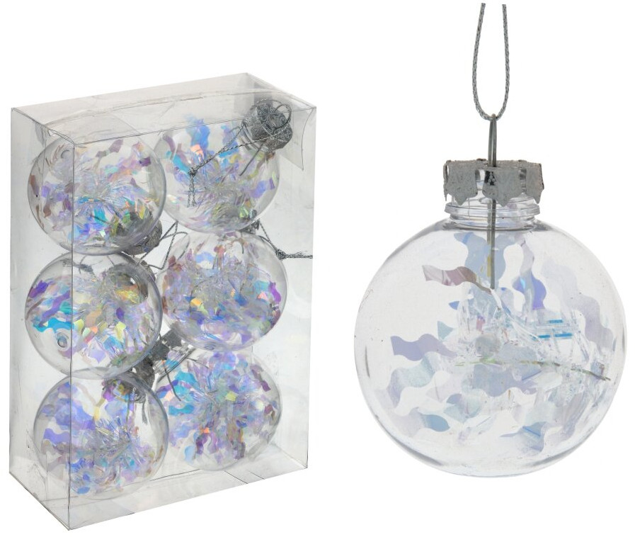 Набор из 6-ти новогодних пластиковых прозрачных шаров с мишурой внутри. Украшения будут поистине празднично смотреться на хвойных веточках. Украсьте елку красиво и создайте собственное новогоднее настроение! |