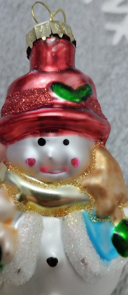 Remeco club Украшение новогоднее «Снеговик»большой размер красивый внешний вид качественное исполнение ретро-стиль В данный момент этот товар отсутствует в продаже. Возможно, у нас найдется аналогичный или похожий товар здесь. Серия: Новогодний декор «Рождество» Новогоднее украшение «Снеговик» — это оригинальная стеклянная елочная игрушка, которая прекрасно дополнит ваш праздничный декор. Игрушка выполнена с любовью и заботой о деталях: у снеговика яркая красная шапка с зелеными элементами, красивый желтый шарф, который добавляет ему уютный вид. Его улыбающееся лицо, с нарисованными глазами и розовыми щечками, создает веселую атмосферу. В одной руке снеговик держит маленькую игрушку, что подчеркивает игривый дух зимнего праздника. Снеговик станет ярким акцентом на вашей елке, добавляя ощущение магии и веселья в ваш дом. |