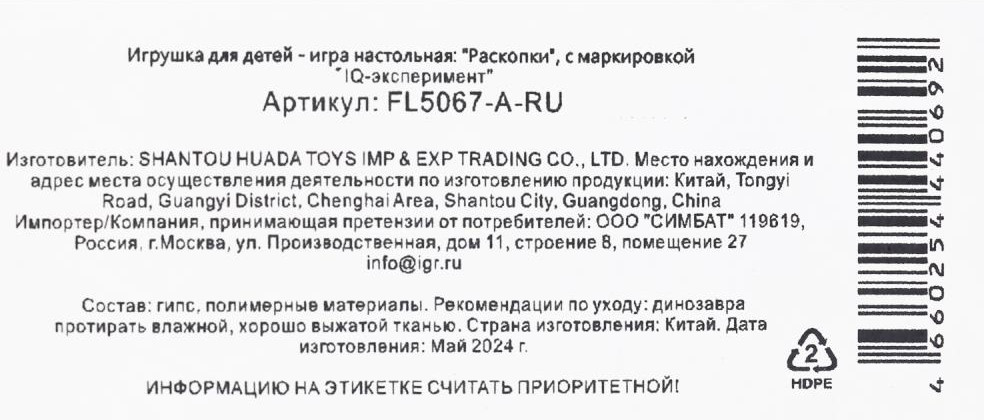 💳 Оплатить за товар можно при получении 🇰🇿 Есть бесплатная доставка по Казахстану от 1 дня 🎁 Копите бонусы с каждой покупки Игровой набор «Череп динозавра. Брахиозавр» из серии «Настоящие раскопки» ТМ «IQ Эксперимент» непременно понравится юным палеонтологам. |