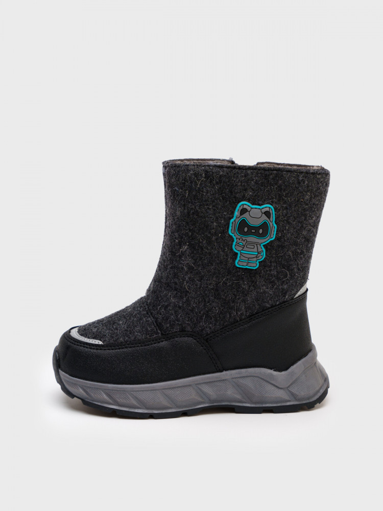 Сапоги детские зимние для мальчика. Современные валенки — голенище сделано из войлока с содержанием шерсти 50%, носочная и пяточная часть — из искуственной кожи с высокими износостойкими свойствами. Подкладка и съемная стелька выполнены из густого шерстяного меха 80%. Модель имеет молнию изнутри для удобства обувания. Подошва выполнена из терморезины с глубоким протектором. Формоустойчивый задник поддерживает стопу в правильном положении. Рекомендованный температурный режим ( зависит от активности ребенка и поддевы под обувь) ( зависит от активности ребенка и поддевы под обувь) от 0°С до −20°С. Модель из капсульной коллекции Vr Avatar. Соберите полный образ в едином стиле!