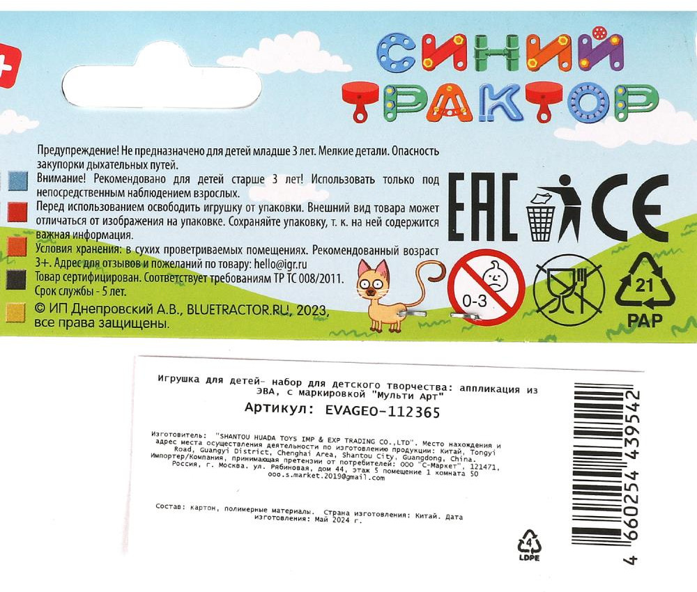 Набор для творчества — геометрическая мозаика из ЭВА «Синий Трактор» ТМ «Мульти Арт» — отличный подарок для вашего ребёнка, который будет способствовать развитию его творческих способностей. |