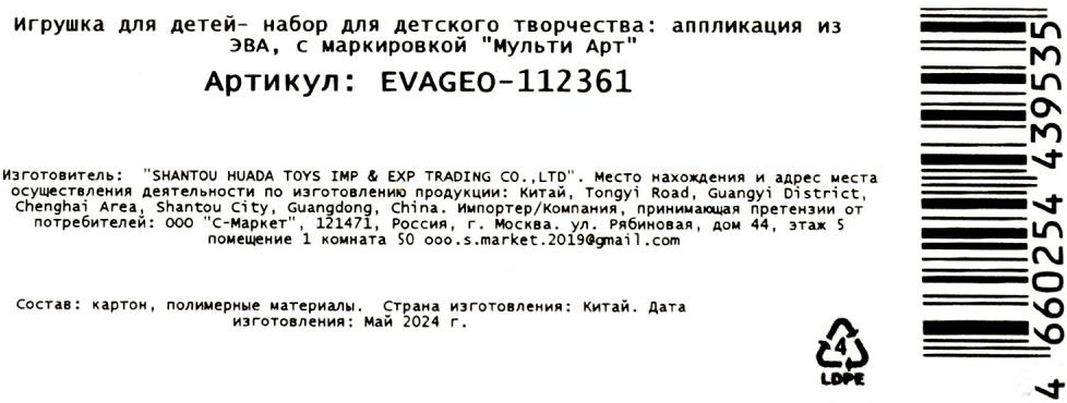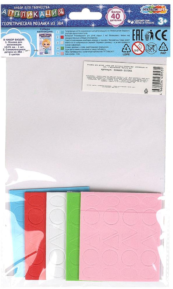 Набор для творчества — геометрическая мозаика из ЭВА «Милая кошечка» ТМ «Мульти Арт» — отличный подарок для вашего ребёнка, который будет способствовать развитию его творческих способностей. |