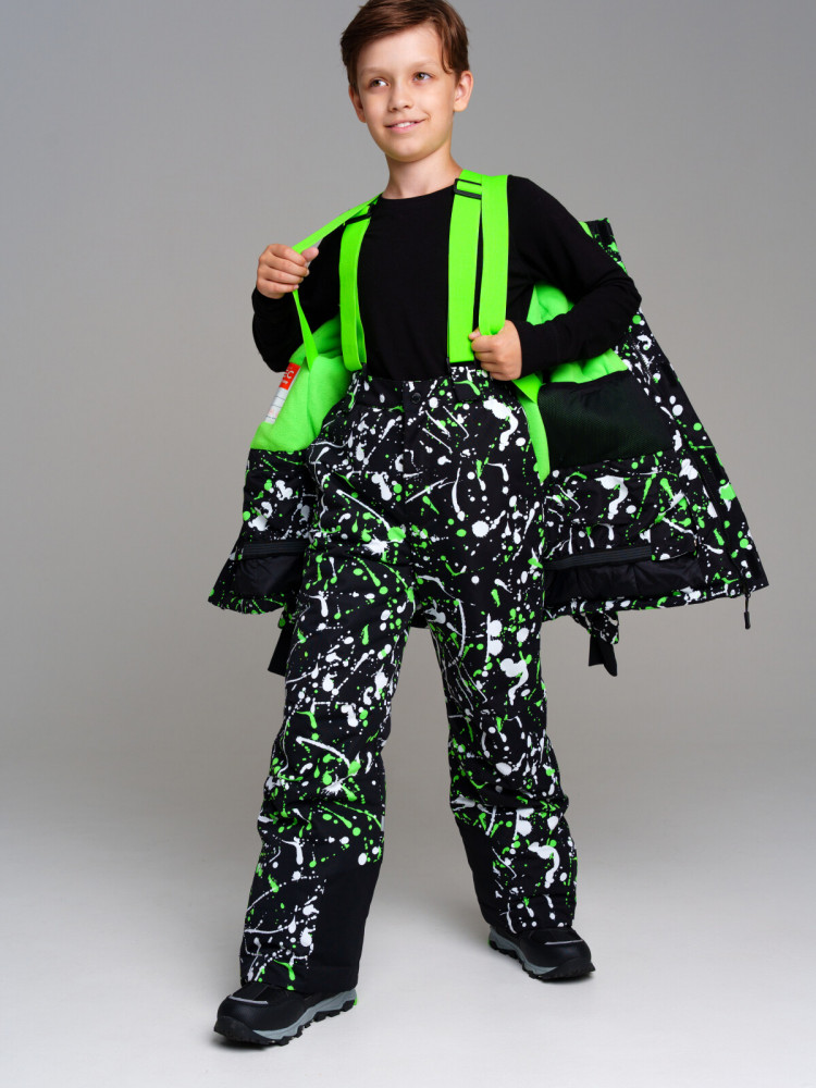 Зимний горнолыжный костюм для мальчика-подростка. Утепленный горнолыжный комплект — идеальный выбор для активного отдыха на свежем воздухе в зимний период. Инновационный утеплитель и флисовая подкладка сохраняют тепло морозную погоду. Мембранный материал делает этот яркий и модный комбинезон непромокаемым: мембрана не пропускает влагу снаружи, но выводит её изнутри, что крайне важно во время подвижных игр и занятий спортом. Легкий, теплый и удобный, комплект идеально подходит для спорта, лыж, сноуборда и игр на свежем воздухе в холодный период года: зима, поздняя осень и ранняя весна.