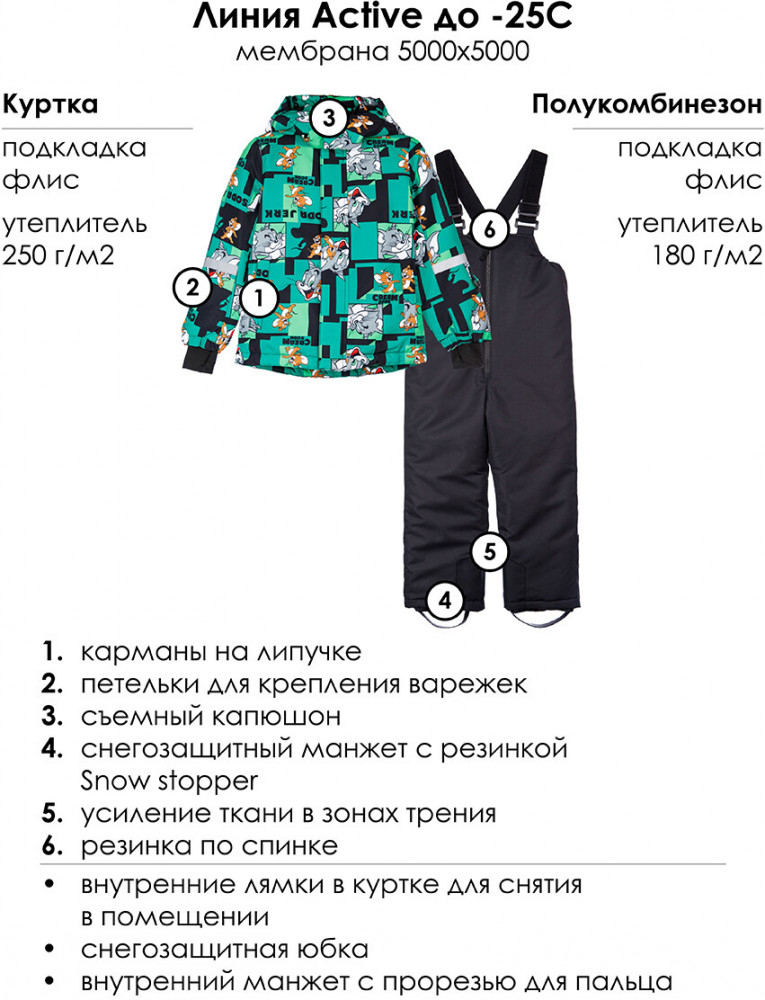 Зимний горнолыжный костюм для для мальчика. Утепленный горнолыжный комплект — идеальный выбор для активного отдыха на свежем воздухе в зимний период. Инновационный утеплитель и флисовая подкладка сохраняют тепло морозную погоду. Мембранный материал делает этот яркий и модный комбинезон непромокаемым: мембрана не пропускает влагу снаружи, но выводит её изнутри, что крайне важно во время подвижных игр и занятий спортом. Легкий, теплый и удобный, комплект идеально подходит для спорта, лыж, сноуборда и игр на свежем воздухе в холодный период года: зима, поздняя осень и ранняя весна.
