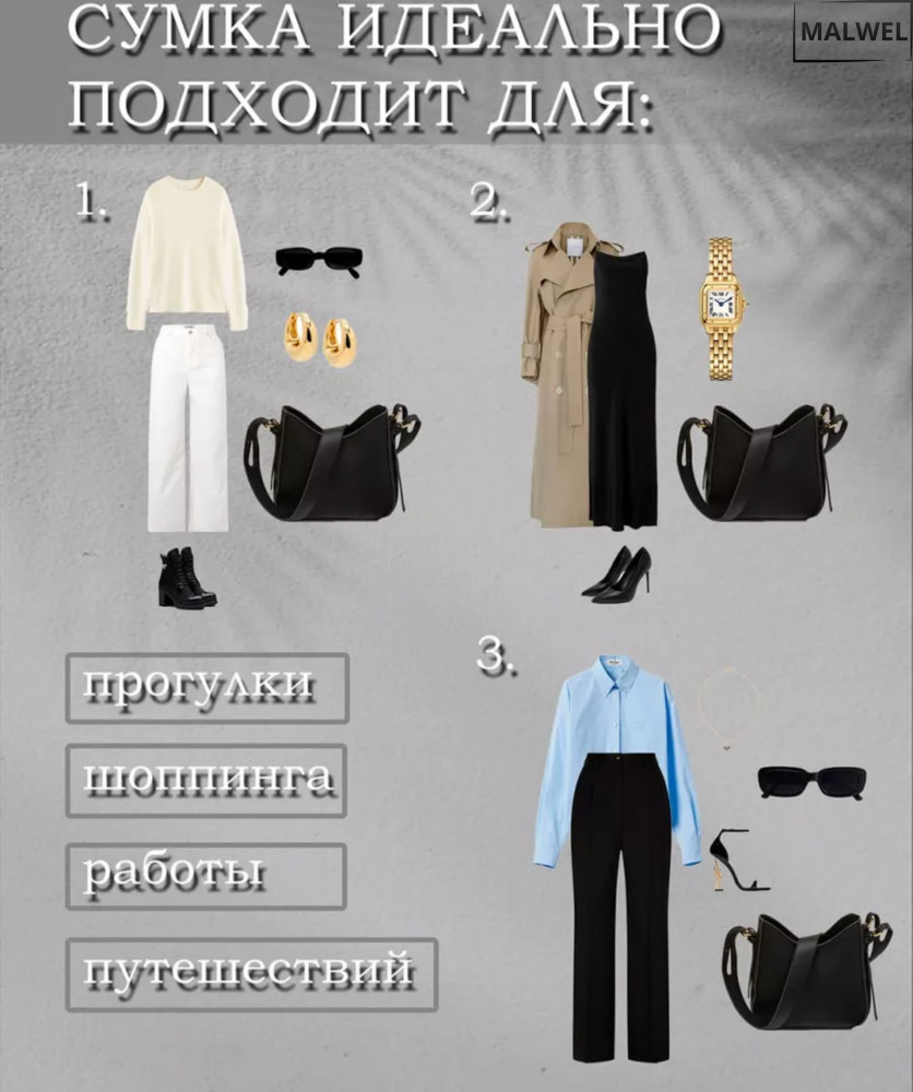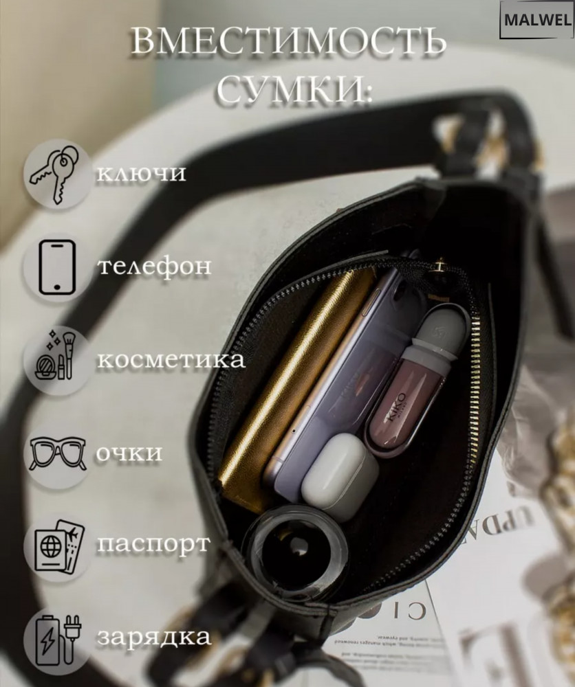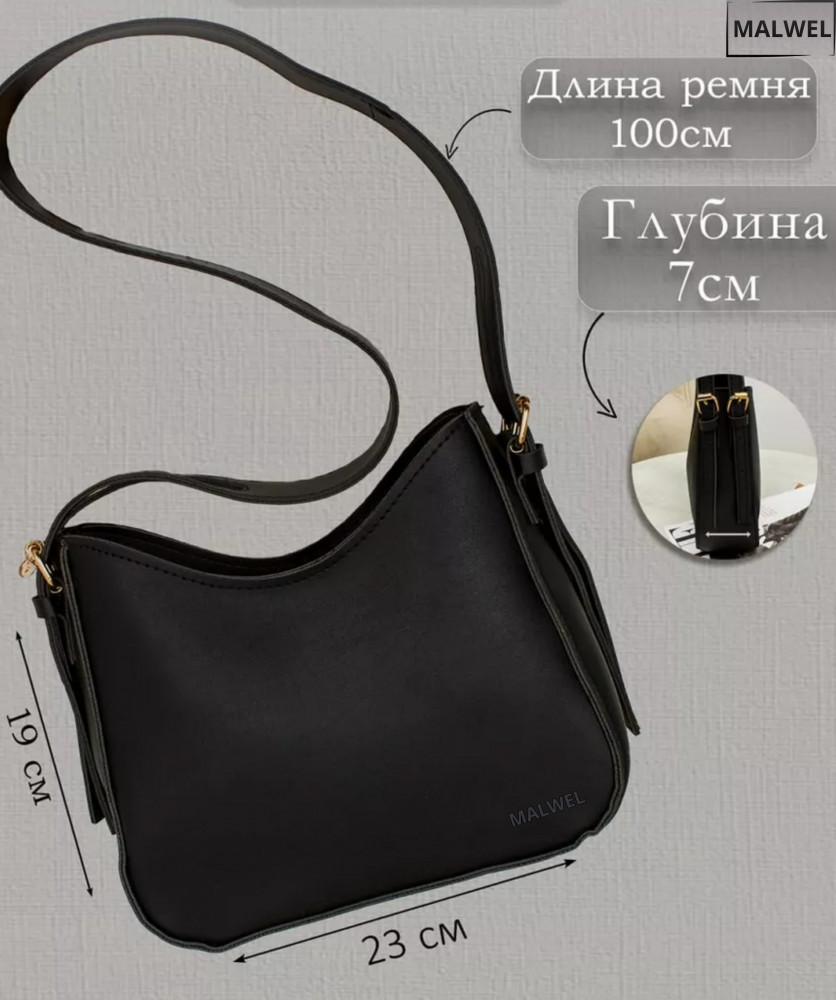 Женская сумка — это неотразимость девушек в мире аксессуаров. Модная, стильная и просторная сумка хобо пришла, чтобы украсить твою жизнь. Ее черный цвет добавляет элегантности и шарма, подчеркивая твой безупречный стиль. Это как магический атрибут, который превращает каждое путешествие в потрясающее приключение. Благодаря своему ёмкому объему, она, как мешок, легко вмещает все необходимые вещи для дня: от кошелька и ключей до косметичек и зонтиков. С ней через плечо ты можешь быть уверена, что ничего не забудешь.