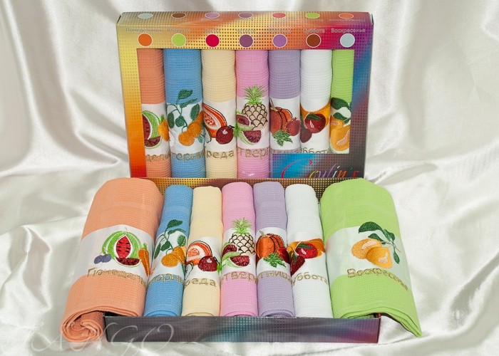 Набор полотенец вафельных «Ceylin's» Неделька (арт. plt049-16, 50х70 - 7 шт.)В данный момент этот товар отсутствует в продаже. Возможно, у нас найдется аналогичный или похожий товар здесь. Полотенце вафельное производят из так называемой вафельной ткани. Свое название она получила благодаря внешнему сходству с одноименными изделиями. Эффект выделенных клеток достигается с помощью специального переплетения. |