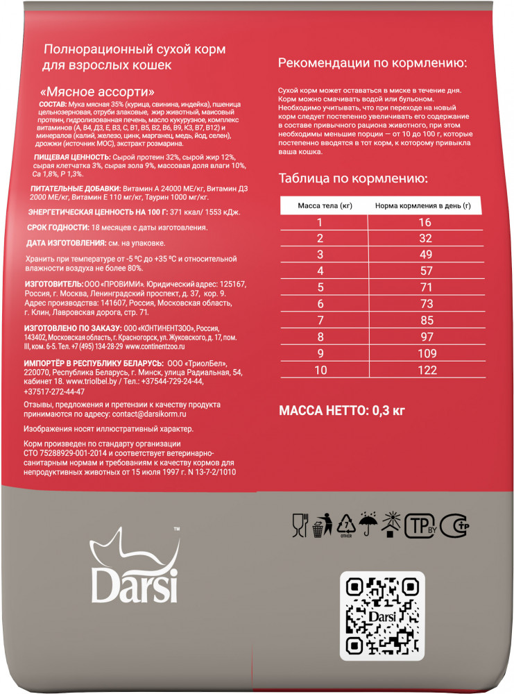 Darsi Корм для взрослых кошек «Мясное ассорти»