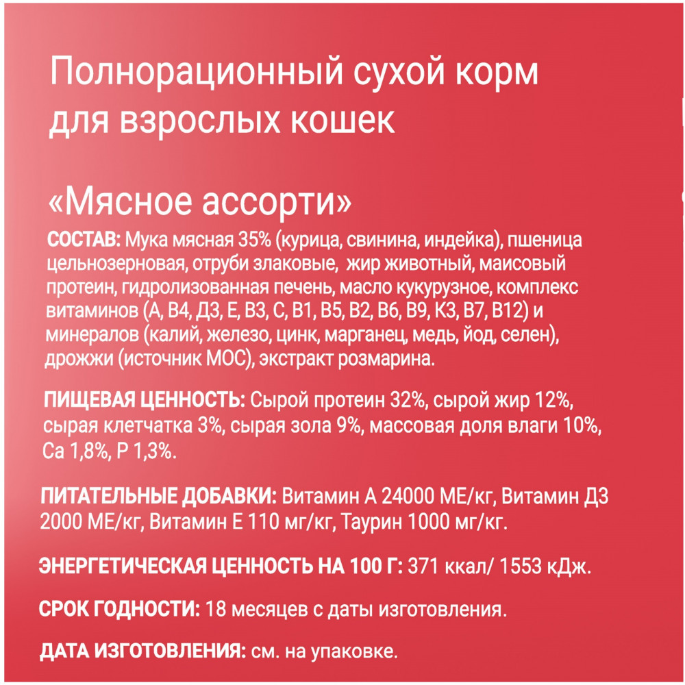 Отзывы «Корм для взрослых кошек «Мясное ассорти»»