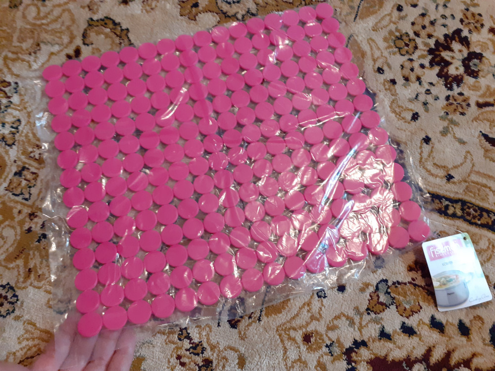 Давно искала именно такой, только для одной : когда мою чугунные решетки от плиты, чтоб раковину не царапать. Мягкий, плотный, закрывает всю поверхность раковины.