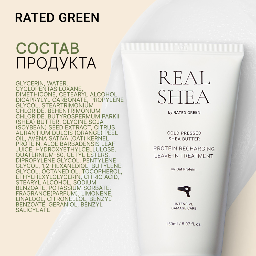 RATED GREEN Восстанавливающий крем термозащита для волоc с маслом ши холодного отжима