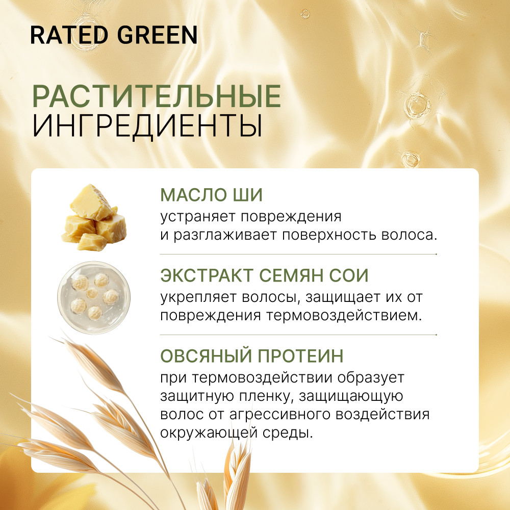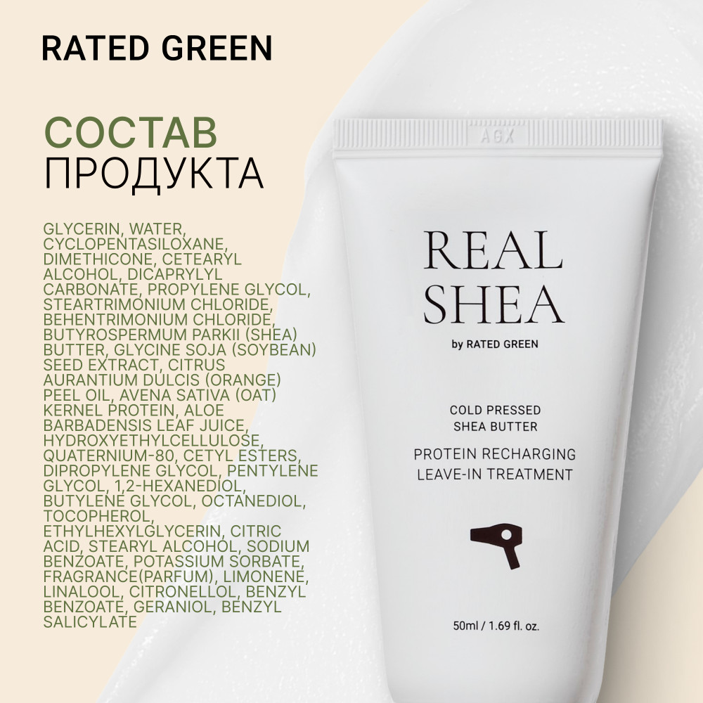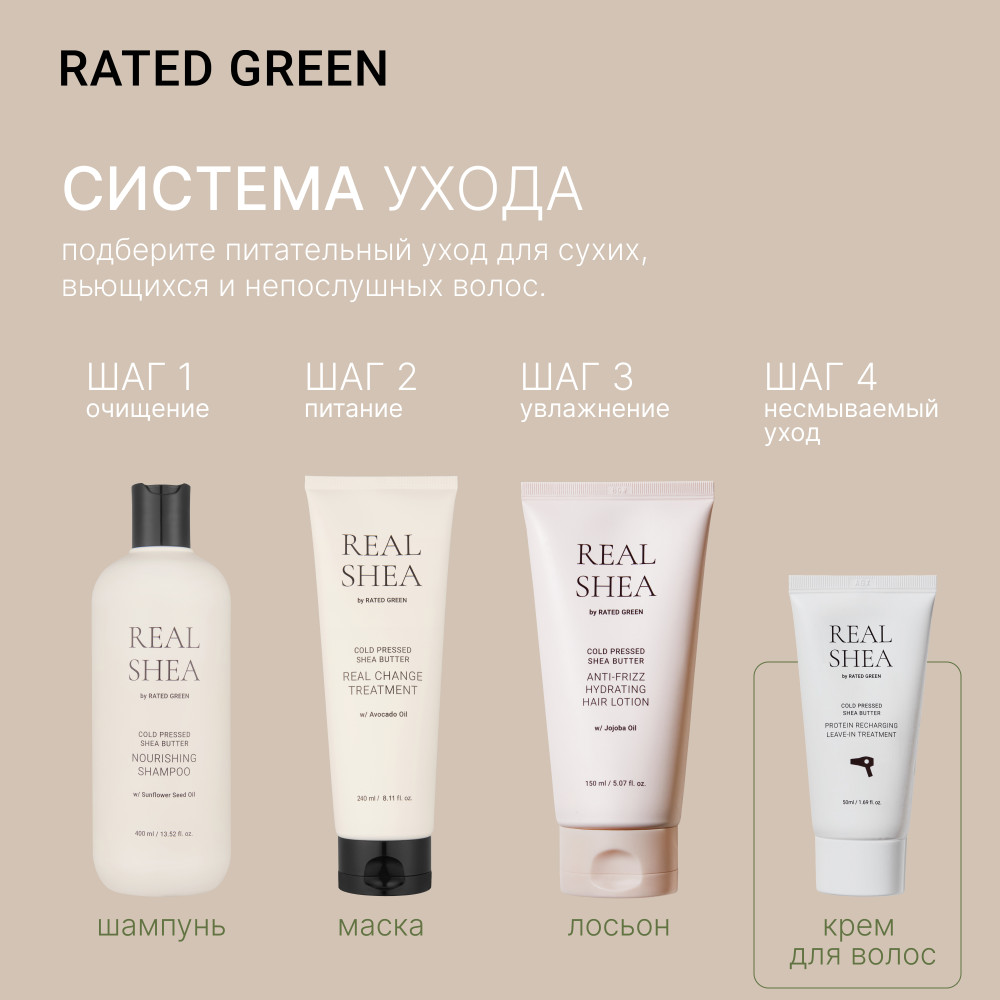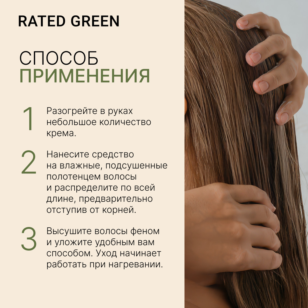 RATED GREEN Восстанавливающий крем термозащита для волоc с маслом ши холодного отжима