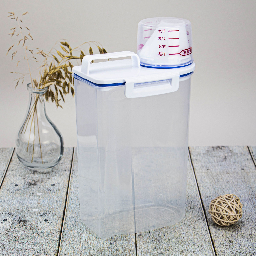 Я не знаю, чем предыдущему покупателю не зашел Этот контейнер, но, по мне, так он вполне соответствует ожиданиям. Удобно, что есть Выемка с одной стороны, чтобы его держать во время насыпания. Также есть мерный стаканчик И на самом контейнере указан вес в килограммах. Мне нужен был для сухого стирального порошка ( всегда держу порошок в таких ёмкостях чтобы он, во-первых, не выдыхался, во-вторых, удобно насыпать без рассыпания).