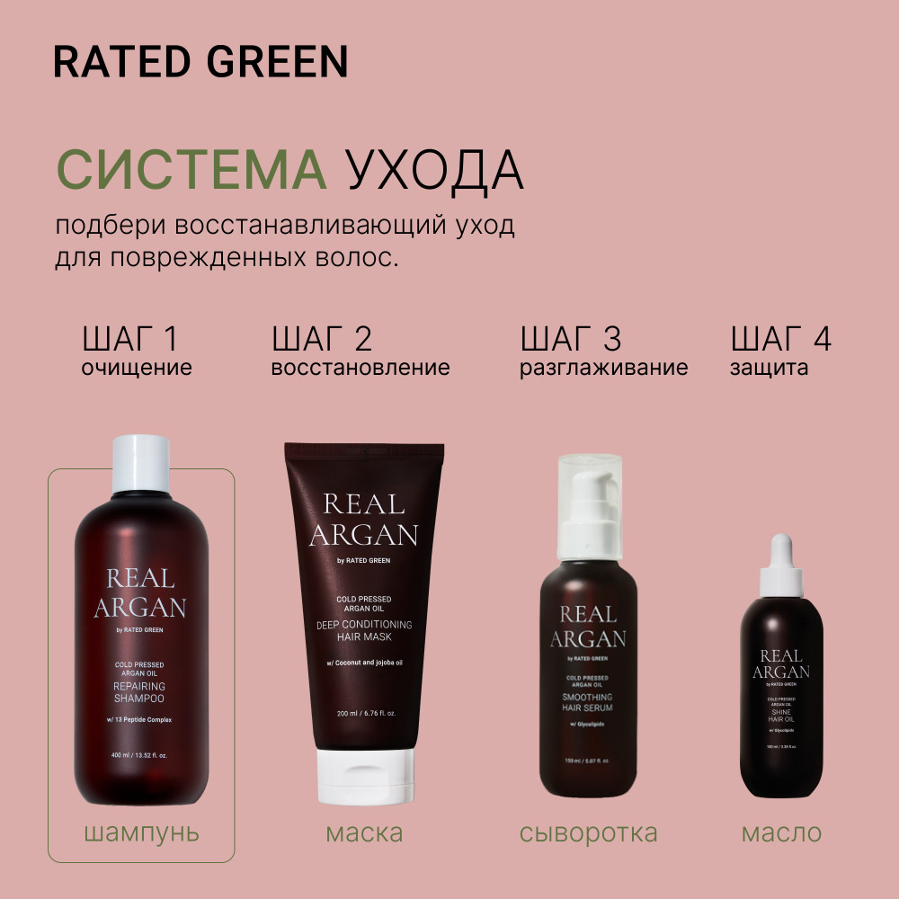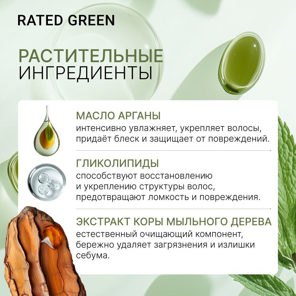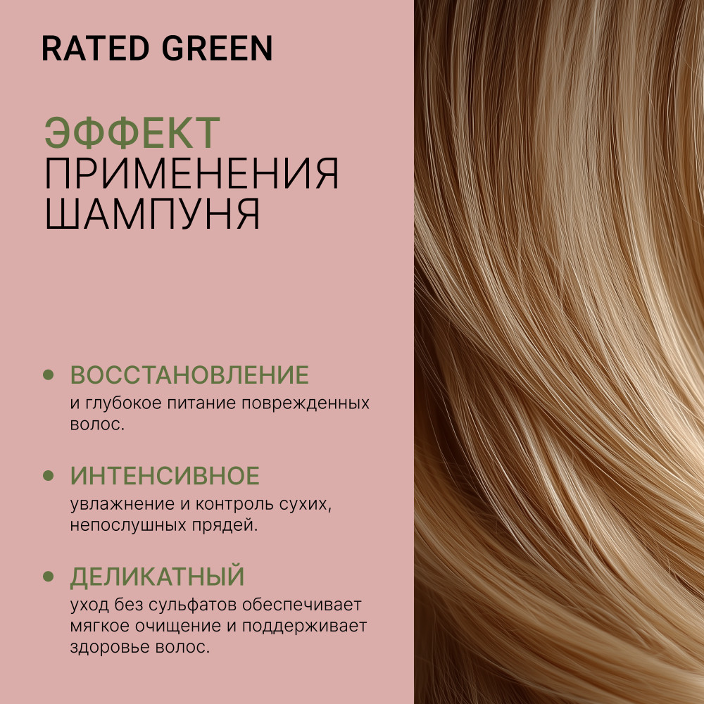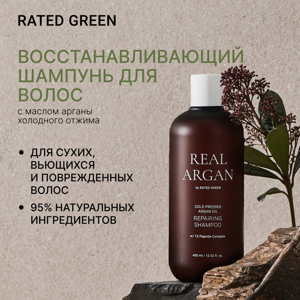 RATED GREEN Восстанавливающий шампунь с маслом арганы для сухих, вьющихся и поврежденных волос
