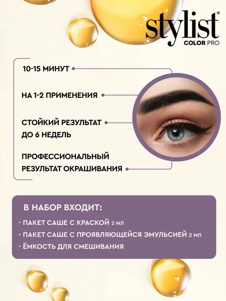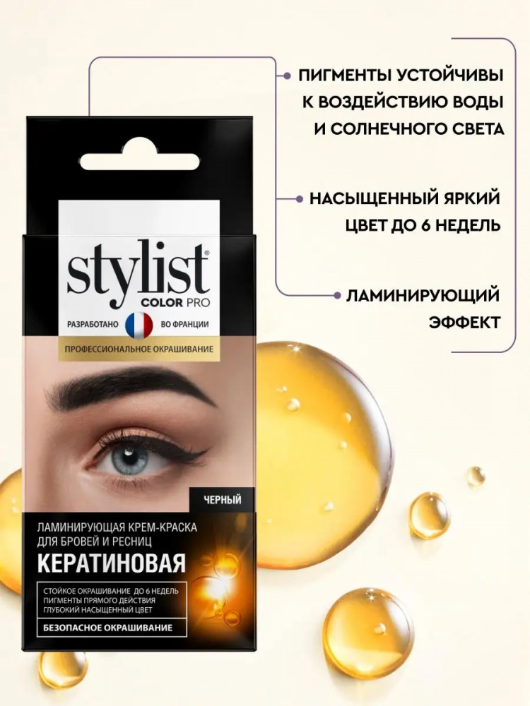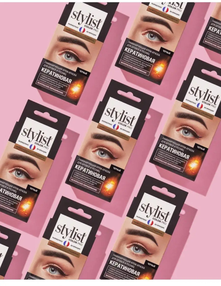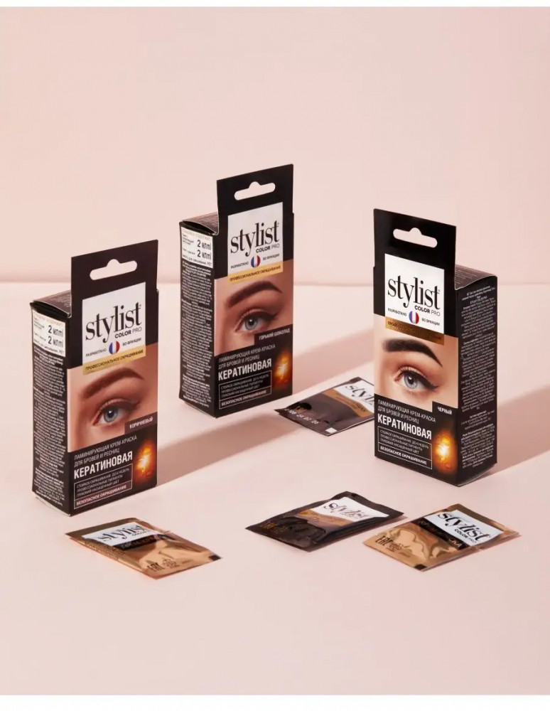 Stylist Color Pro Крем-краска для бровей и ресниц ламинирующая кератиновая, оттенок Черный