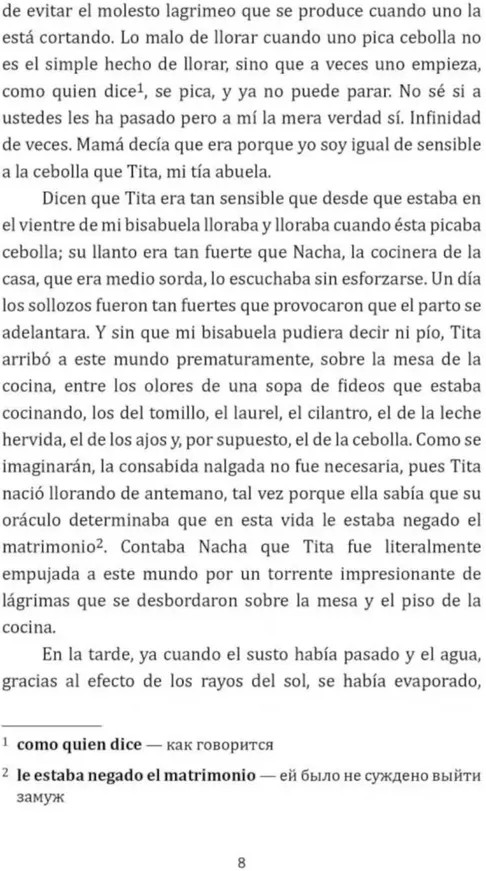 Como aqua para chocolateВ данный момент этот товар отсутствует в продаже. Возможно, у нас найдется аналогичный или похожий товар здесь. Серия: Historia de un amor «Шоколад на крутом кипятке» — горько-сладкая семейная сага, вкусная, сочная, полная волшебства. Роман получил свое название от испанской фразы Como agua para chocolate, означающей накал страстей, точку кипения. Это намек на содержание книги — историю о девушке по имени Тита, эмоции которой перевоплощаются в удивительные блюда. Рецепты Титы насыщены такими ингредиентами, как любовь и счастье, в них смешиваются боль и радость, смех и слезы. Наполненная кулинарной магией и огненной страстью, эта невероятная история не отпустит вас до финала... |