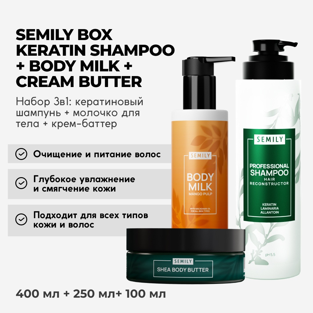 Semily Набор косметических средств 3 в 1В данный момент этот товар отсутствует в продаже. Возможно, у нас найдется аналогичный или похожий товар здесь. Профессиональный шампунь (400 мл) с кератином глубоко очищает волосы, борется с ломкостью и придаёт объём у корней. Увлажняющая формула идеально подходит для чувствительной и сухой кожи головы, очищая её так же деликатно, как бессульфатные аналоги, благодаря отсутствию SLS. В отличие от бессульфатных средств, шампунь хорошо пенится за счёт мягких ПАВ. Подходит для мужских, женских, окрашенных, кудрявых и жирных волос. Не вымывает пигмент и предотвращает желтизну блонда, что делает его идеальным выбором для блондинок с осветленными и мелированными прядями. Себорегулирующая функция нормализует жирность и предотвращает появление себореи и перхоти. Натуральный кератиновый состав с популярными корейскими компонентами и пантенолом укрепляет тонкие волосы, реанимирует повреждённые и секущиеся кончики, стимулирует быстрый рост, улучшает кровообращение и помогает от выпадения. |