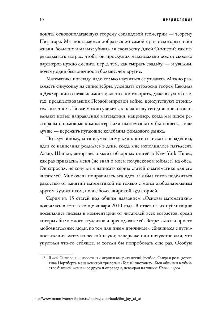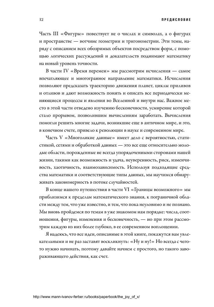 Удовольствие от Х. Увлекательная экскурсия в мир математики от одного из лучших преподавателей в миреВ данный момент этот товар отсутствует в продаже. Возможно, у нас найдется аналогичный или похожий товар здесь. Благодаря этой невероятно легкой и увлекательной книге вы сможете вспомнить или открыть для себя заново увлекательный мир математики: начиная с того, зачем вообще нужны цифры и далее к таким темам, как геометрия, интегральное исчисление, статистика и бесконечность. Автор объясняет великие математические идеи просто и элегантно, приводя блистательные примеры, понятные каждому. |