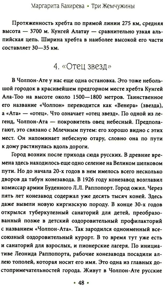 💳 Оплатить за товар можно при получении 🇰🇿 Есть бесплатная доставка по Казахстану от 1 дня 🎁 Копите бонусы с каждой покупки «Как хорошо мы плохо жили». Принято считать, что «рай» (свобода) наступил только сейчас, и можно путешествовать «по всему миру». Это правда, но лишь отчасти. В советское время люди тоже путешествовали. Может быть, больше по своей стране. А страна у нас была большая. И удивительная. Маргарита Бахирева, филолог и журналист, объездила почти всю страну. Результатом поездок стали книги «В отпуск — на Диксон» и «Путешествие к вулкану». Всего опубликовано семь книг, в том числе два сборника стихов. В новой книге «Три жемчужины» автор продолжает рассказывать, где и как отдыхали советские люди. Почему «Три жемчужины»? — Это три страны, самобытные, с богатой древней историей: Киргизия, Россия, Югославия. Иссык-куль — жемчужина Тянь-Шаня (1967), Валаам — жемчужина Ладоги (1975) и Сплит — жемчужина моря (1979). Книга богата по содержанию, наполнена живыми эмоциями и погружает не только в древнюю, но и в недавнюю (советскую) историю. А вы знаете, чем путешествия в советское время отличались от нынешних? |