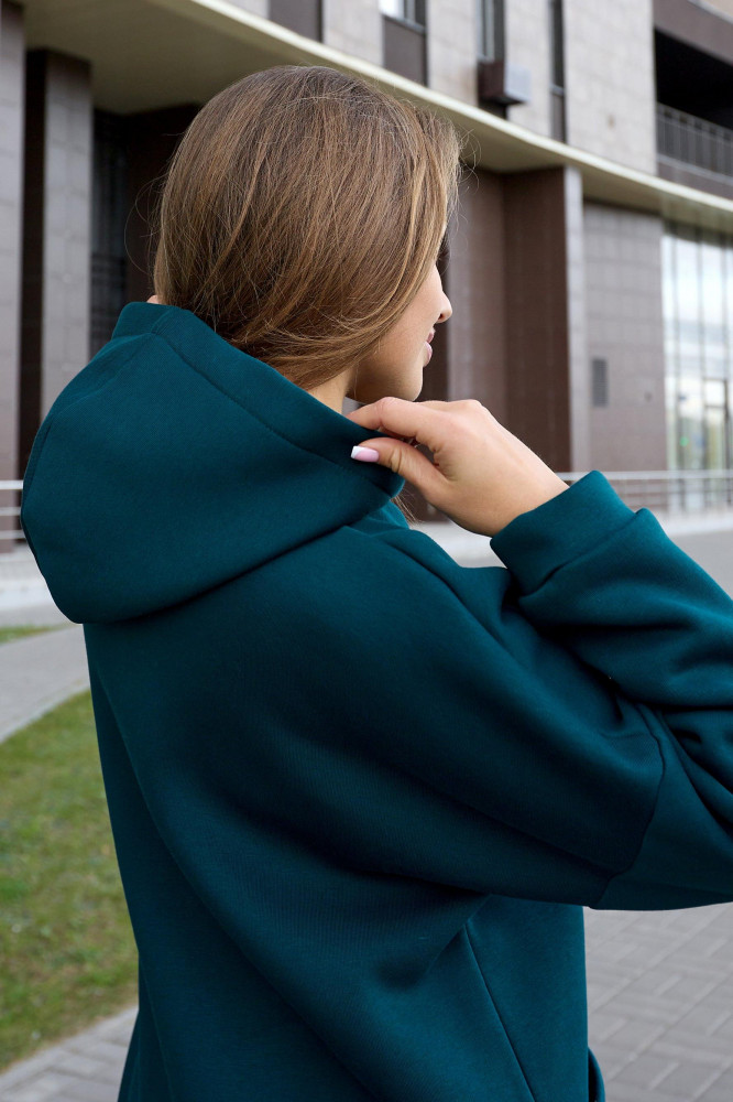 Футер с начесом, кое где торчат нитки - но это не критично. Цвет больше серо-синий. Лучше брать на размер больше. Тёплая. но смотрится дёшево. мне не понравилось как на мне сидит. но толстовка неплохая