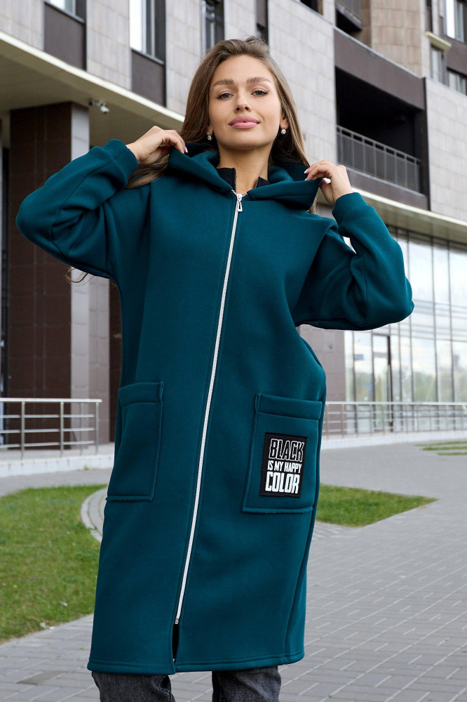Футер с начесом, кое где торчат нитки - но это не критично. Цвет больше серо-синий. Лучше брать на размер больше. Тёплая. но смотрится дёшево. мне не понравилось как на мне сидит. но толстовка неплохая