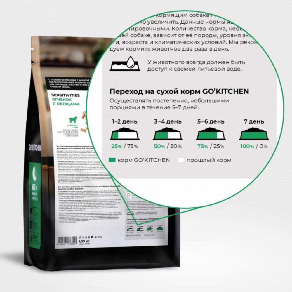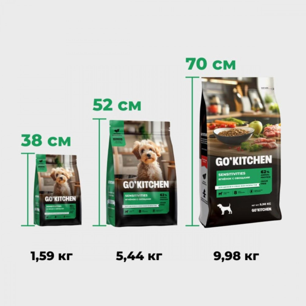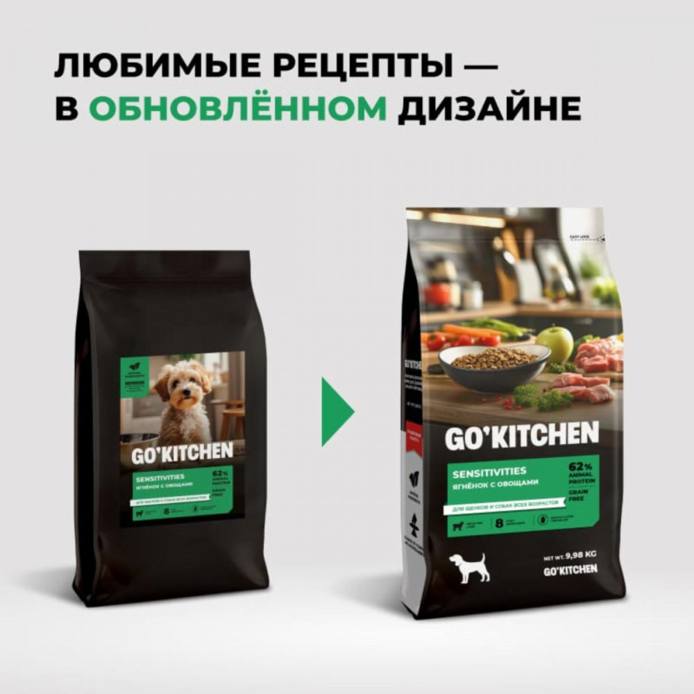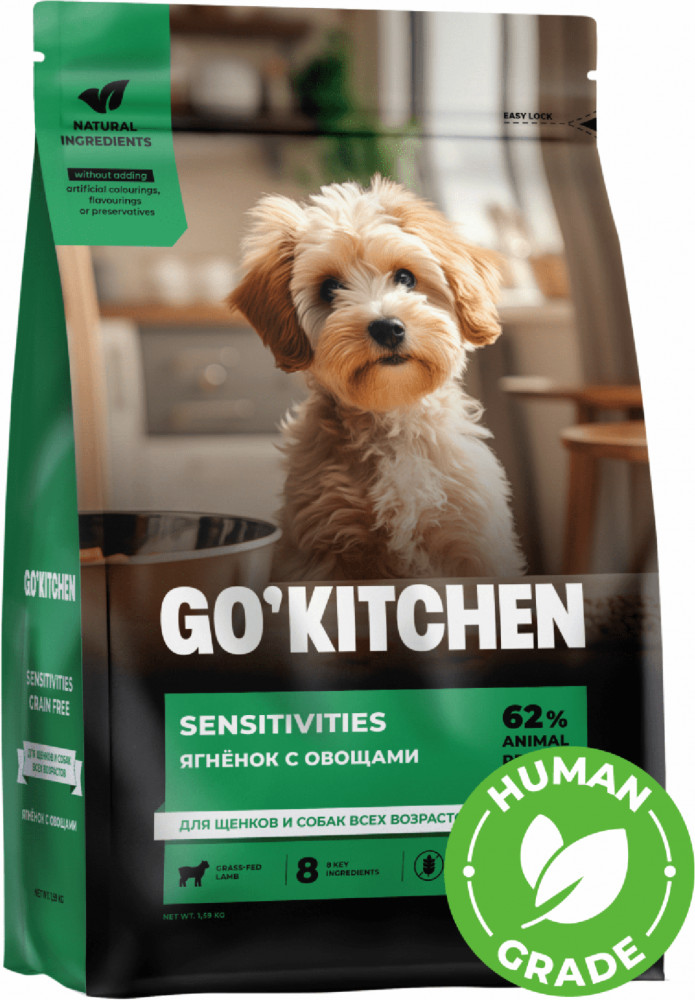 Go'kitchen Корм беззерновой для щенков и собак с ягнёнком для чувствительного пищеварения