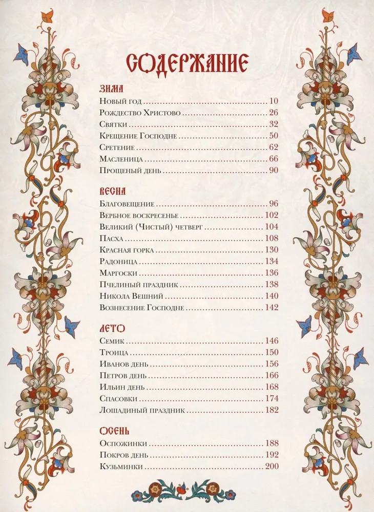 В основу книги легли два труда конца XIX века: «Народные праздники на Святой Руси» Николая Степанова и «Нечистая, неведомая и крестная сила» Сергея Максимова. Две эти работы, впервые объединенные в одном издании, дают цельную и детальную картину вселенной русских праздников и связанных с ними традиций, обрядов и суеверий. От главных дат в русском календаре — Рождества, Масленицы, Пасхи, Троицы — до Пчелиного и Лошадиного дня, Кузьминок, Оспожинок и Семика.