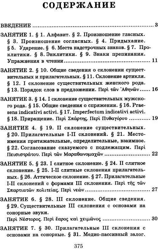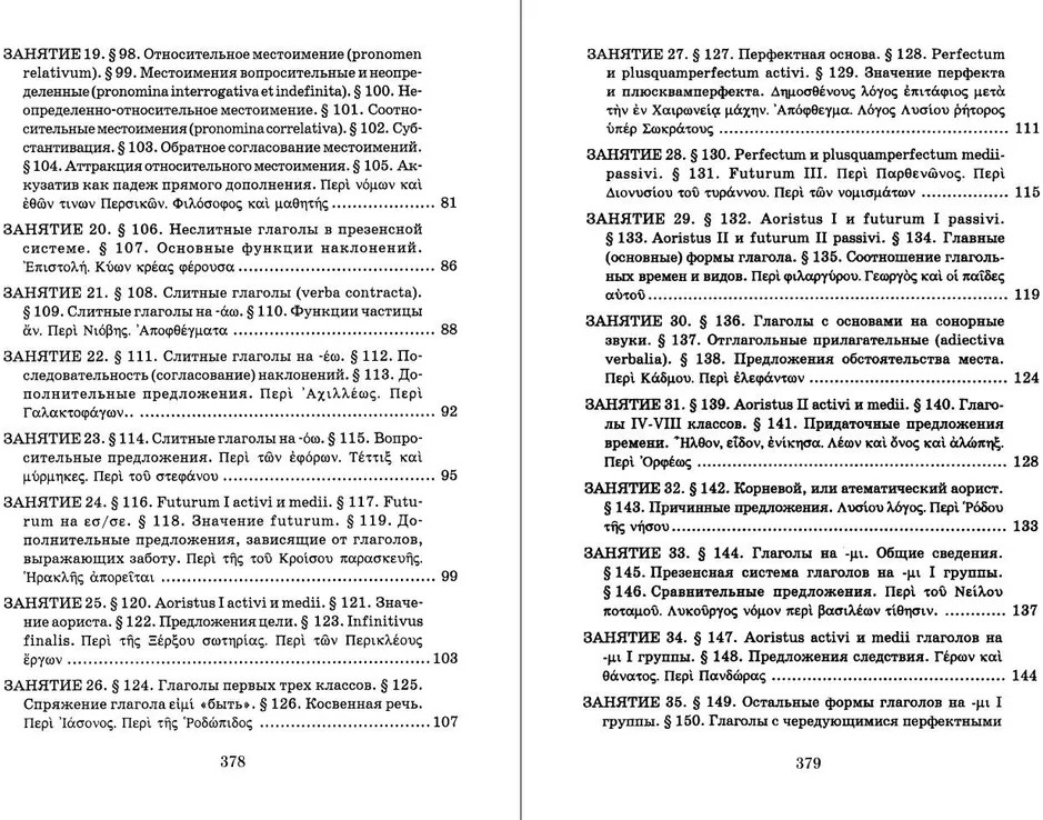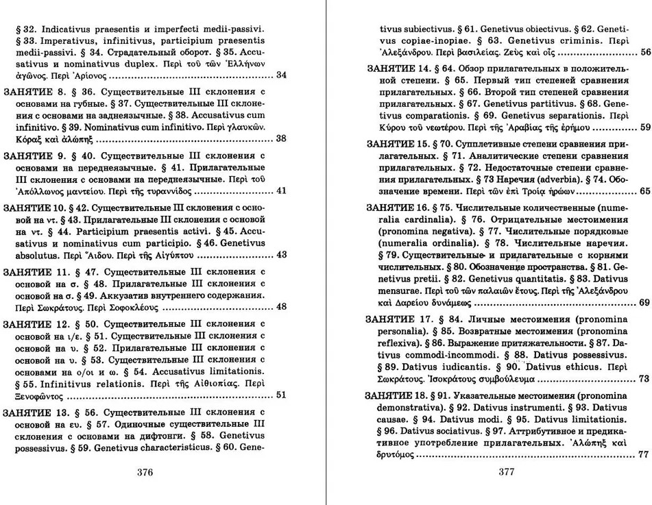 Учебник древнегреческого языка. Для нефилологических факультетов высших учебных заведенийАндрей Чеславович Козаржевский В данный момент этот товар отсутствует в продаже. Возможно, у нас найдется аналогичный или похожий товар здесь. Серия: Школа классической филологии: древнегреческий язык Вниманию читателей предлагается учебник древнегреческого языка, который в настоящее время преподается на гуманитарных факультетах некоторых университетов, в гимназиях и лицеях, духовных учебных заведениях. Практически обозримый минимум грамматики распределен между 38 занятиями, в которых языковые явления подаются комбинированно: морфология параллельно с синтаксисом, глагол одновременно с именем, причем однотипные образования объединяются. В Грамматическом справочнике все сведения систематизированы при помощи таблиц и перечней со ссылками на соответствующие параграфы занятий. В Приложение вынесены словообразование, стихосложение, особенности языка Гомера и Геродота, диалекта койне, греческий календарь, меры и монетная система, условные сокращения имен греческих авторов. В качестве домашних заданий во всех занятиях содержатся грамматические упражнения. Учебник снабжен алфавитным греческо-русским словарем, в котором при словах с грамматическими особенностями есть ссылки на основной курс и на Грамматический справочник. |