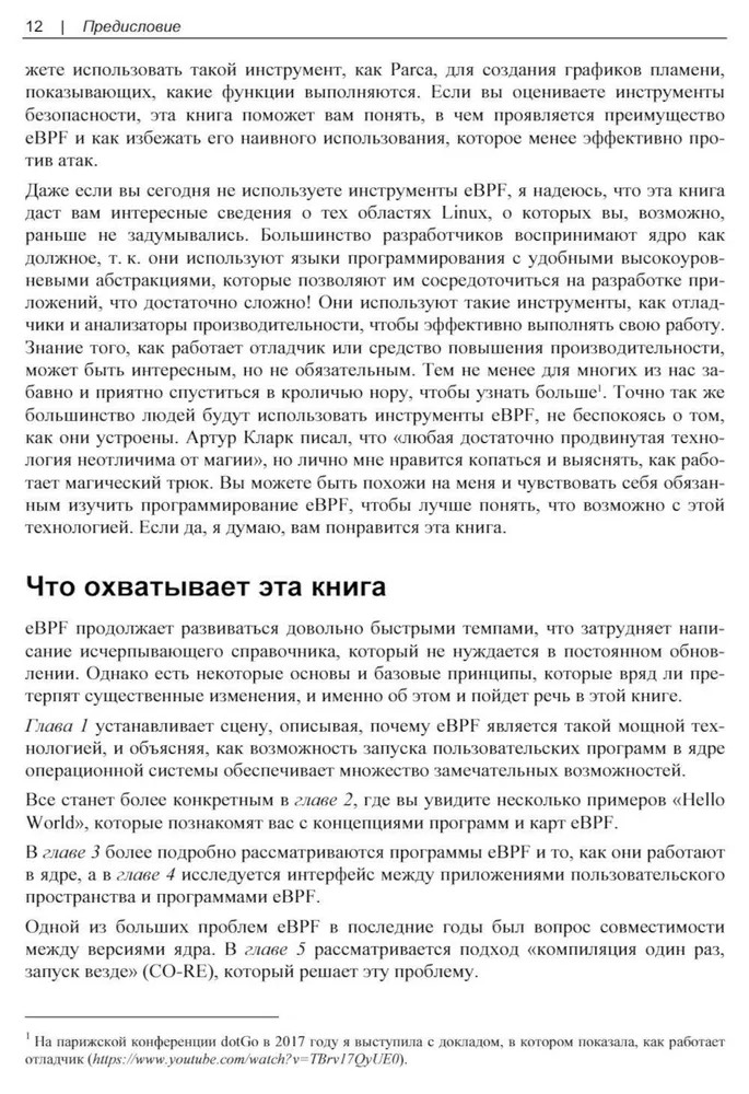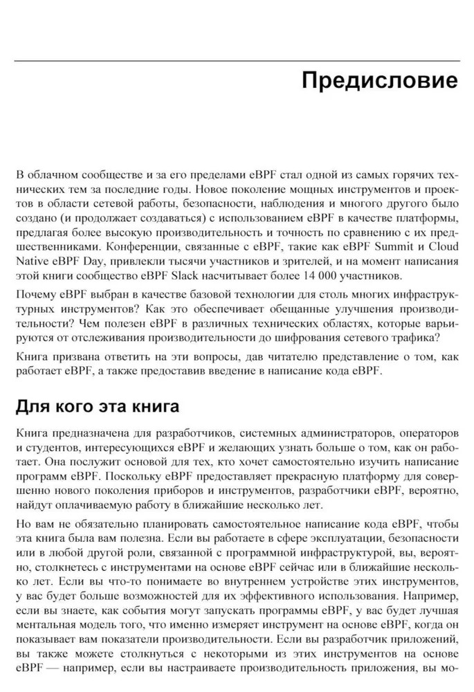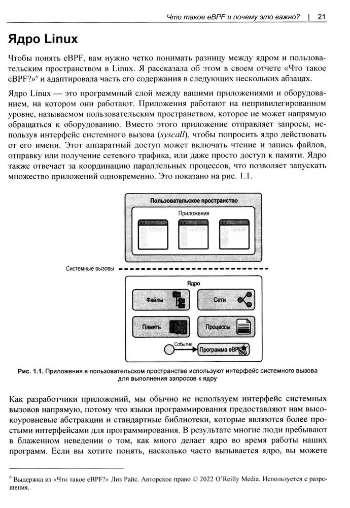 Изучаем eBPFВ данный момент этот товар отсутствует в продаже. Возможно, у нас найдется аналогичный или похожий товар здесь. Серия: O'REILLY Книга по технологии eBPF, построенной на основе знаменитого фильтра пакетов, изобретённого в университете Беркли (Berkeley Packet Filter), и позволяющей пропускать в ядро Linux пользовательские пакеты и таким образом модифицировать поведение и функции ядра. В книге рассмотрено, как eBPF соотносится с устройством ядра Linux и его расширениями, какие системные вызовы применяются при обслуживании eBPF, какую роль eBPF играет при обеспечении безопасности. Рассказано о программировании модулей для eBPF, объяснены практические аспекты использования этого механизма: портирование программ с дистрибутива в дистрибутив и с корпоративного сервера в облако. |