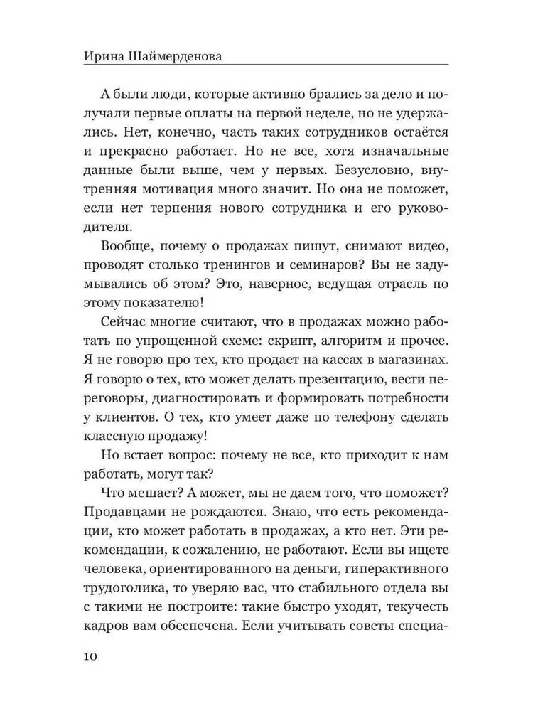 Тайное и явное влияние РГП на продажиИрина Владимировна Шаймерденова В данный момент этот товар отсутствует в продаже. Возможно, у нас найдется аналогичный или похожий товар здесь. Чаще книги по управлению продажами пишут топ-менеджеры, владельцы компаний или бизнес-тренеры. Эта книга основана только на практическом опыте и написана она руководителем группы продаж. Это результат многолетней работы и наблюдений. Здесь подведены некоторые итоги по каждодневной работе в продажах. Что конкретно надо делать или не стоит делать, чтобы продажи росли, а продавцы развивались? Какие методы можно смешивать и создавать свой уникальный подход? Я нашла себе интересное дело, в котором живу много лет, — это продажи. |