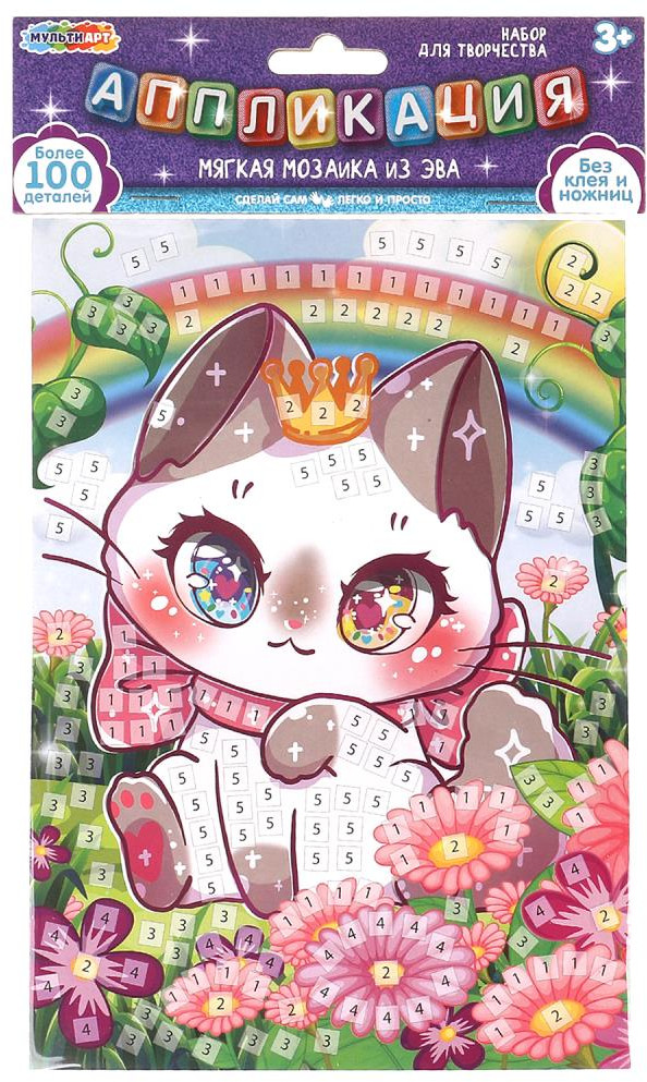 С помощью красочной основы и разноцветных деталей из мягкого материала маленький любознайка сможет самостоятельно создать яркую аппликацию с изображением очаровательного аниме-кошечки. Готовая поделка станет отличным вариантом для подарка близким или для украшения детской комнаты. Набор для творчества — мягкая мозаика из ЭВА — отличный подарок для ребёнка, который будет способствовать развитию его творческих способностей. |