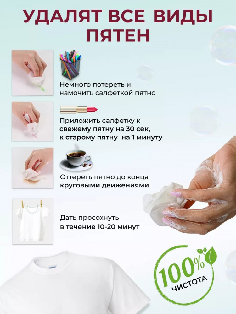 💳 Оплатить за товар можно при получении 🇰🇿 Есть бесплатная доставка по Казахстану от 1 дня 🎁 Копите бонусы с каждой покупки Серия: Clarity Салфетки от пятен на одежде — это ваше экологичное пятновыводящее решение с влажной пропиткой для удаления сложных, в том числе застарелых загрязнений на всех материалах и поверхностях. Экспресс пятновыводитель эффективно очищает обувь, обеспечивает без стирки и химической чистки белизну и чистоту вашего наряда. Салфетки устранят следы от вина крови кофе ягод или соуса за пару минут, не разрушая структуру ткани. Пачка с набором чудо моющих средств против остатков грязи, упакованных в индивидуальное саше — это метод поддержания вещей в идеальном состоянии. Пакетик легко открывается и сразу готов к использованию. Салфетки от пятен на одежде изготовлены по японским технологиям на китайском производстве — это гарант высокого качества и эффективности. |